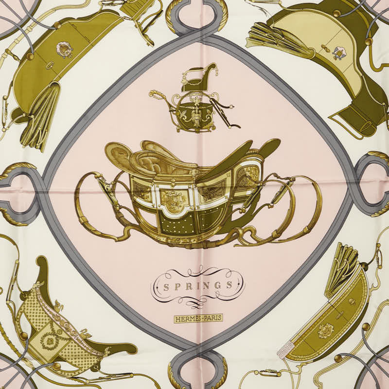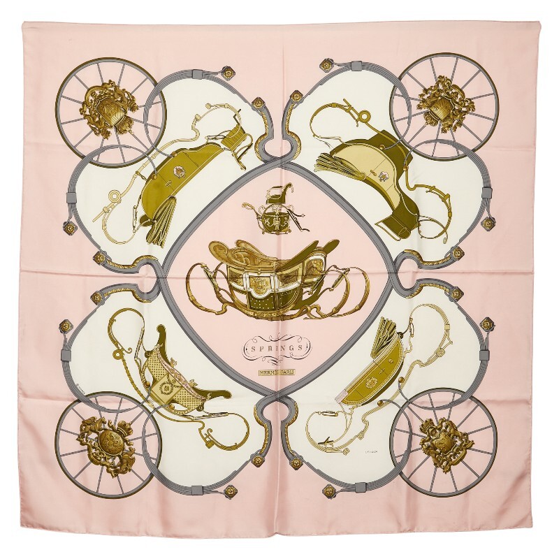 エルメス カレ90 SPRINGS スプリングス 馬車柄 スカーフ ピンク マルチカラー レディース HERMES 【中古】