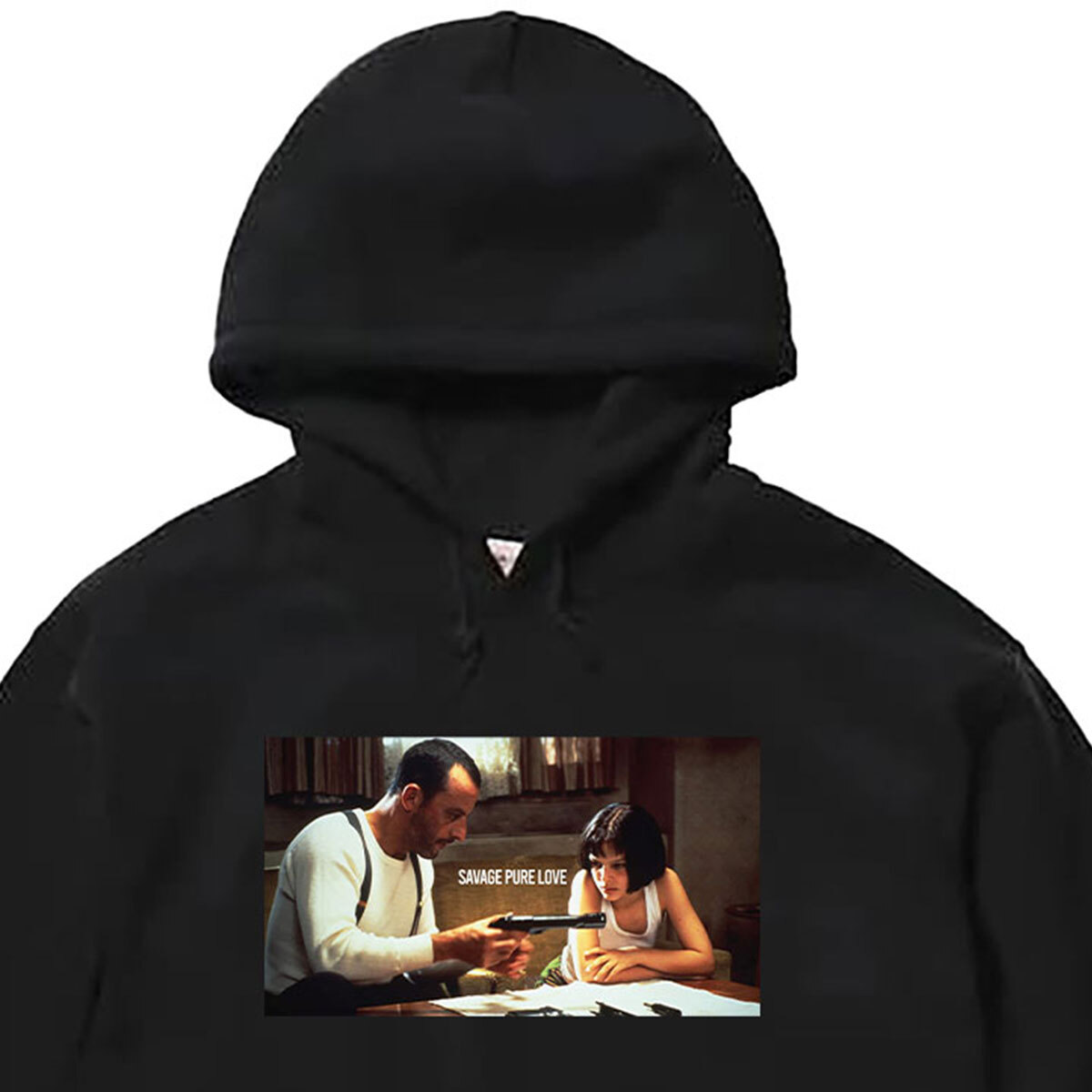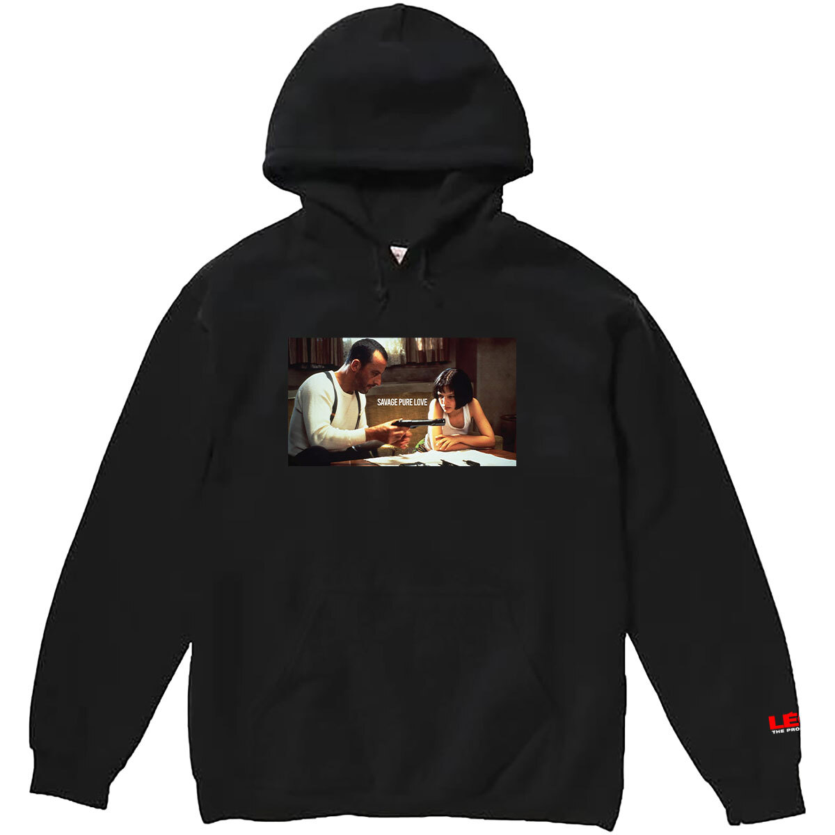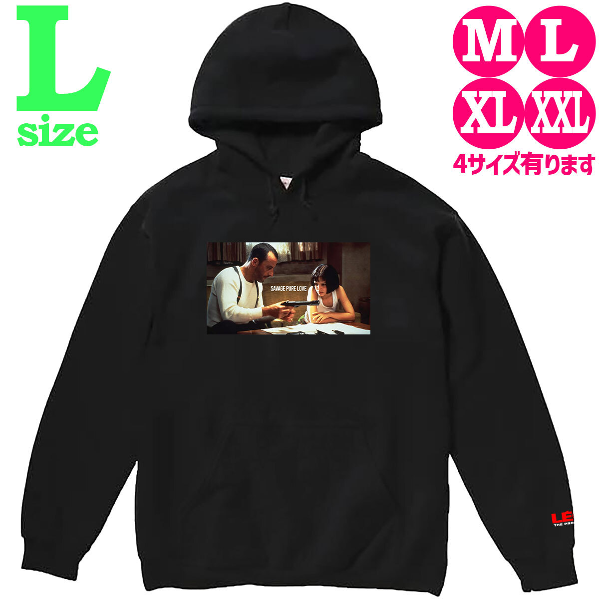 LEON レオン 柄 フォトプリント プルオーバー パーカー ジャンレノ マチルダ ナタリー 大きいサイズ ビッグシルエット ブラック M L XL XXL