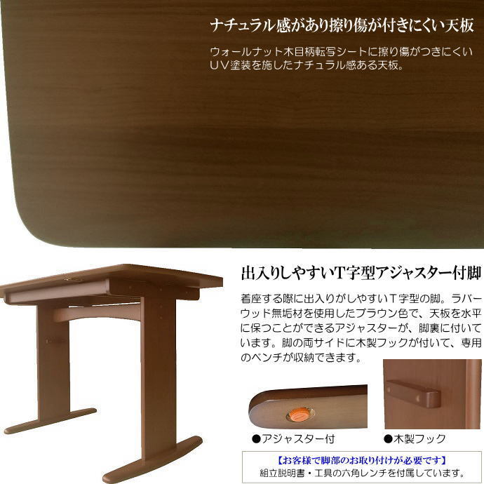 | 【材質】 | 天板:木目柄転写シート・MDF(ブラウン色) 脚部:ラバーウッド無垢材 | |