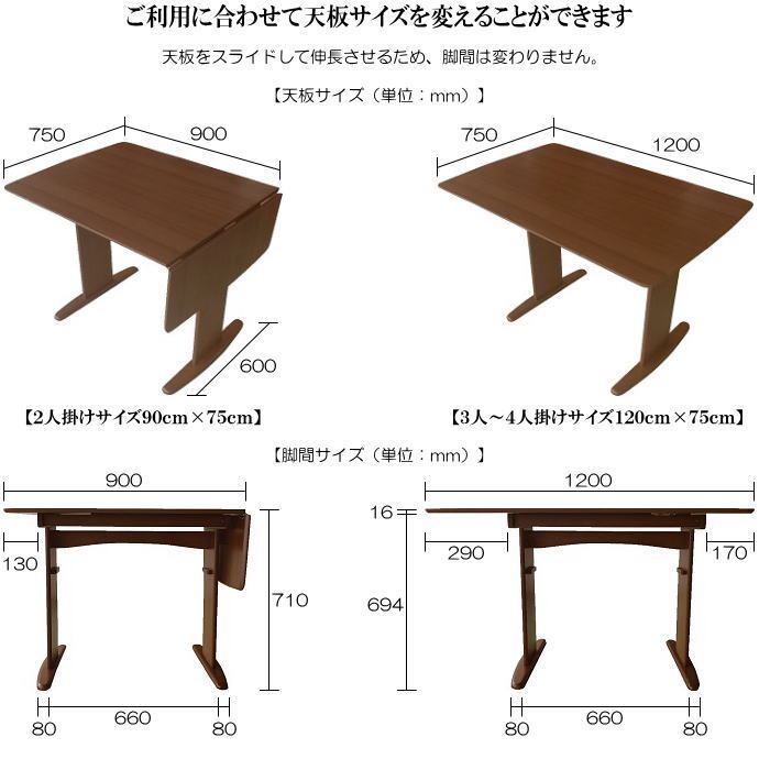| 【サイズ】 | 幅900mm/1200mm×奥行750mm×高710mm | |