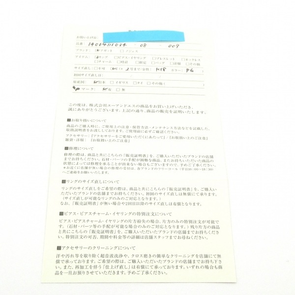 アガット agete リング 8.5 号 K18PG×ダイヤモンド 0.06ct 美品 アクセサリー(指)