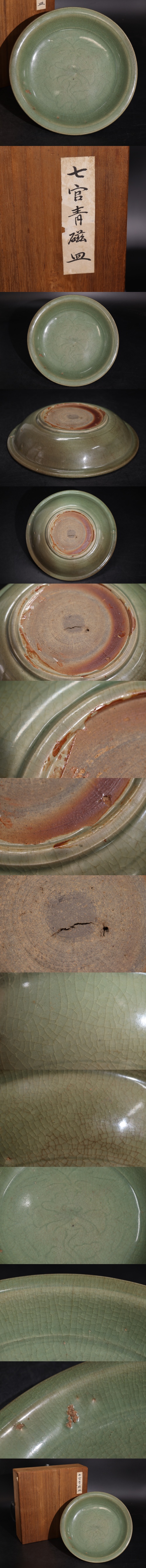 | 「 七官青磁 大皿 」 木箱付 / 中国美術 青磁 皿 飾皿 茶器 煎茶道具 検索: 龍泉窯 秘色 .G2875 |