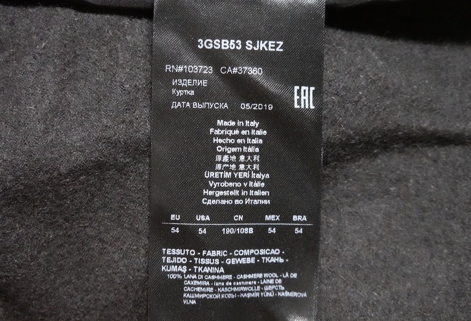 カシミヤ100% 19AW 定価35万 極美品 GIORGIO ARMANI ジョルジオアルマーニ ピュアカシミヤ ジップアップ フーディ パーカー メンズ 54