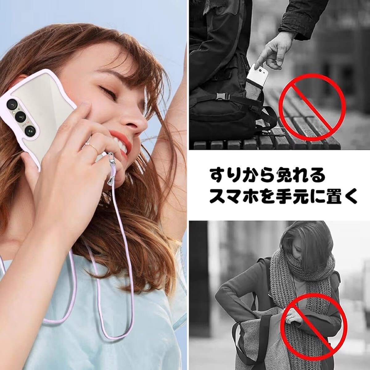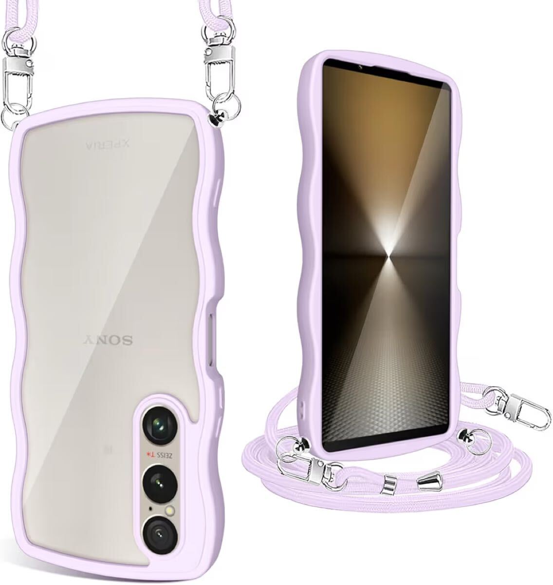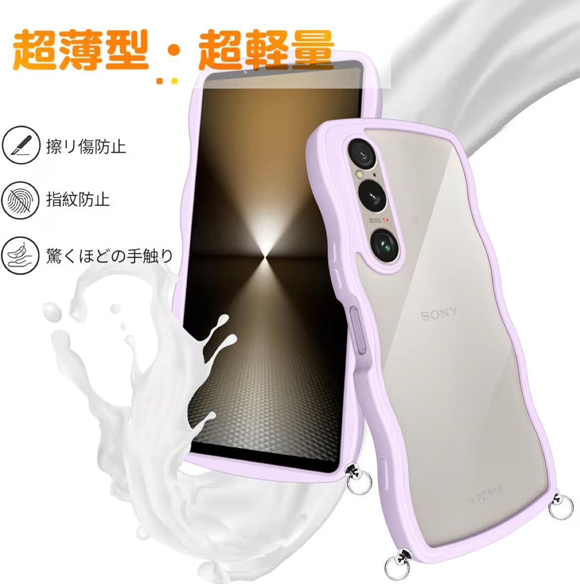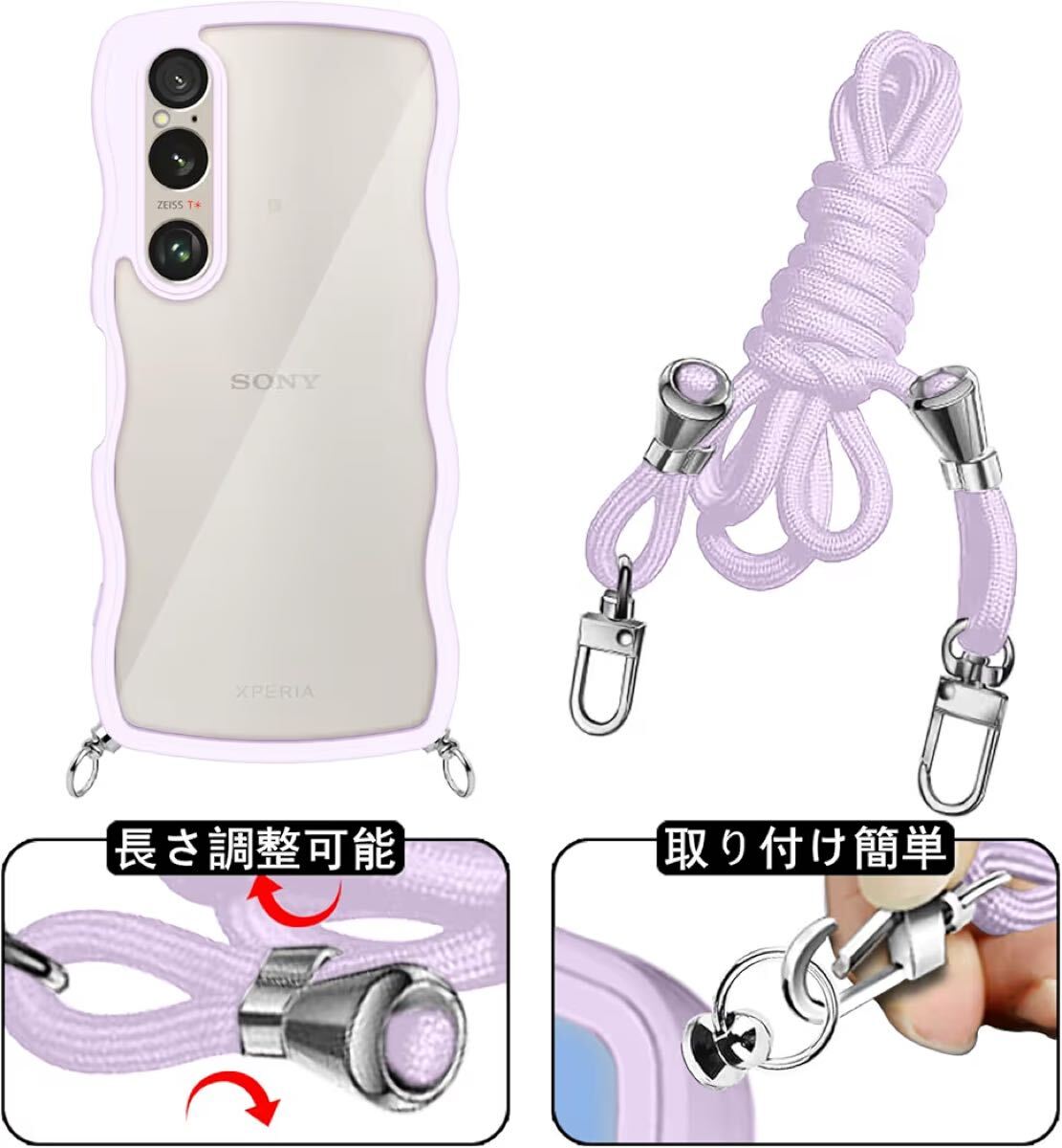 Xperia 1 VI ケース クリア ショルダー エクスペリア 1 vi SO-51E / SOG13 カバー 人気 かわいい 全面保護 ワイヤレス充電対応 Xperia1VI スマホケース 透明 首かけ 肩掛け TPU 薄型 軽量 ストラップ付き 取り外し可能 長さ調整可能(パープル)