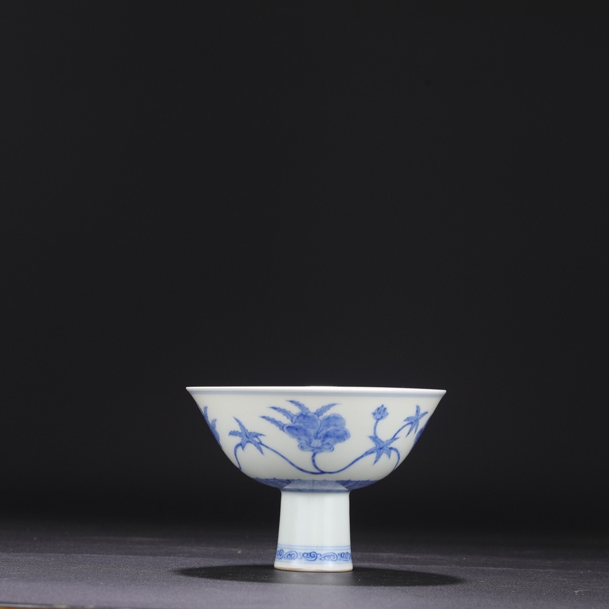 【瓏】陶磁器 青花花卉紋 高足碗 大明成化年製 染付 置物擺件 古賞物 古美術 陶芸 蔵出