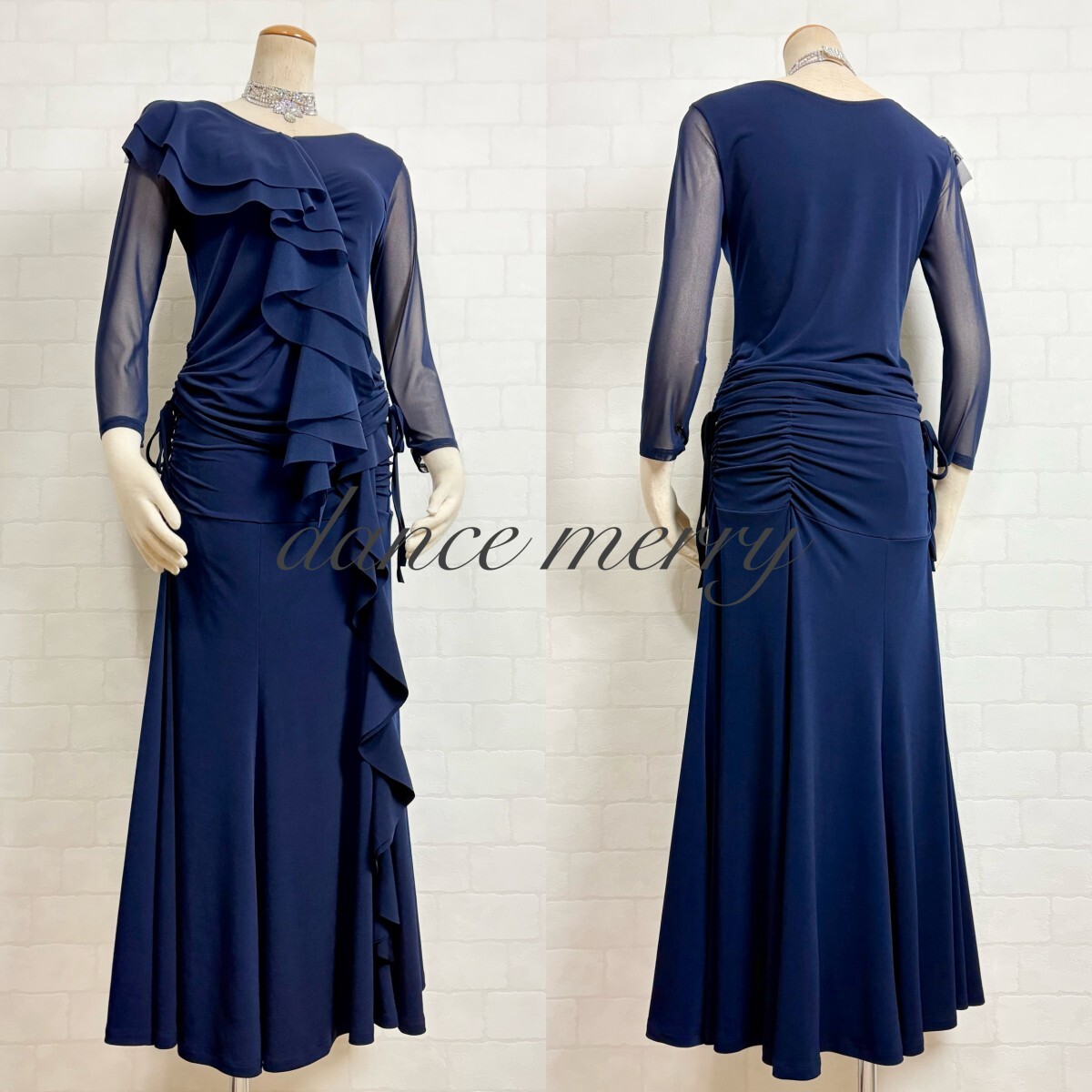 肌ざわりの良いストレッチ素材、メッシュを使用した社交ダンス ツーピースです。