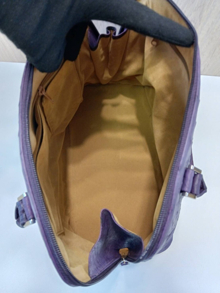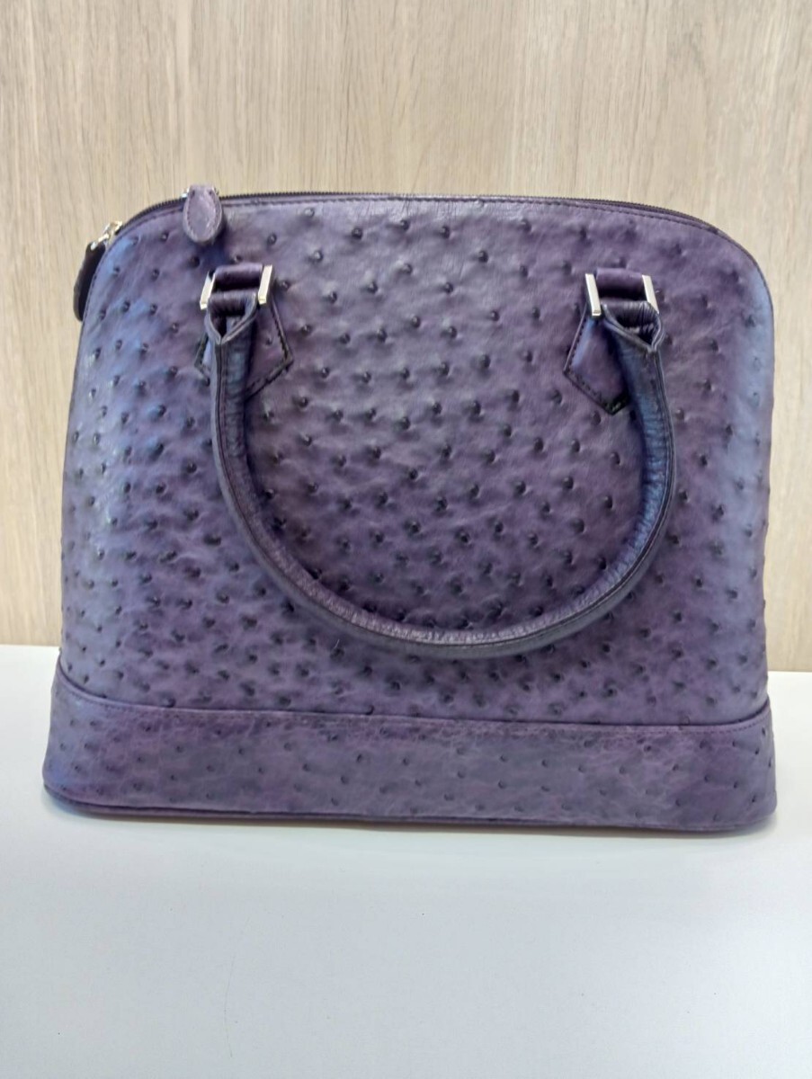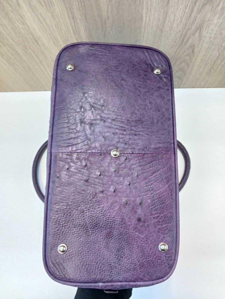 【中古品】 オーストリッチ ハンドバッグパープル レザー 現状品