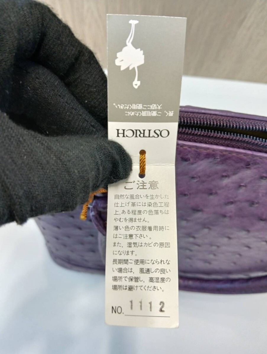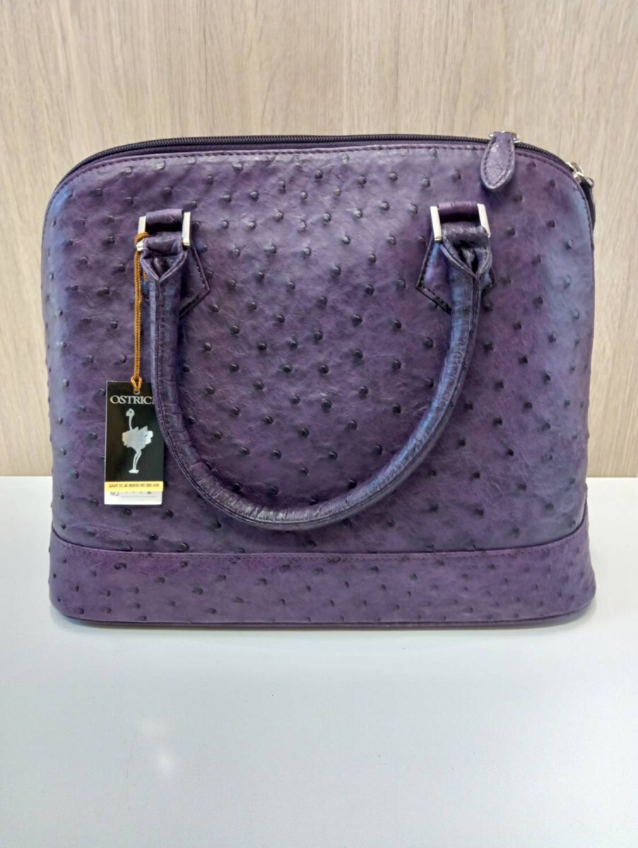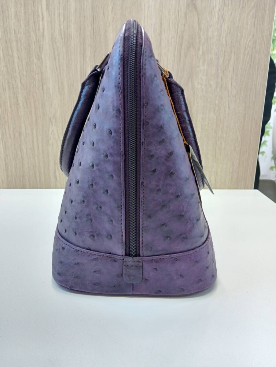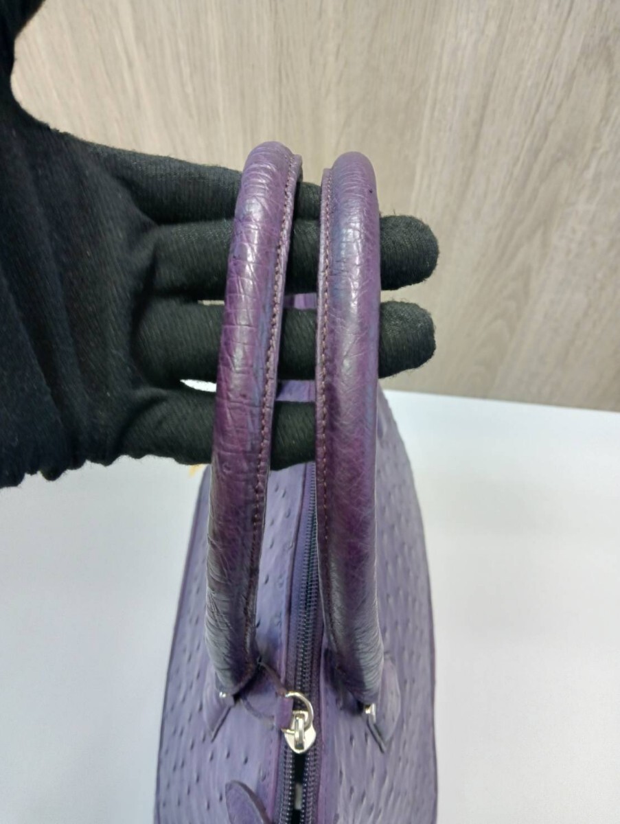【中古品】 オーストリッチ ハンドバッグパープル レザー 現状品