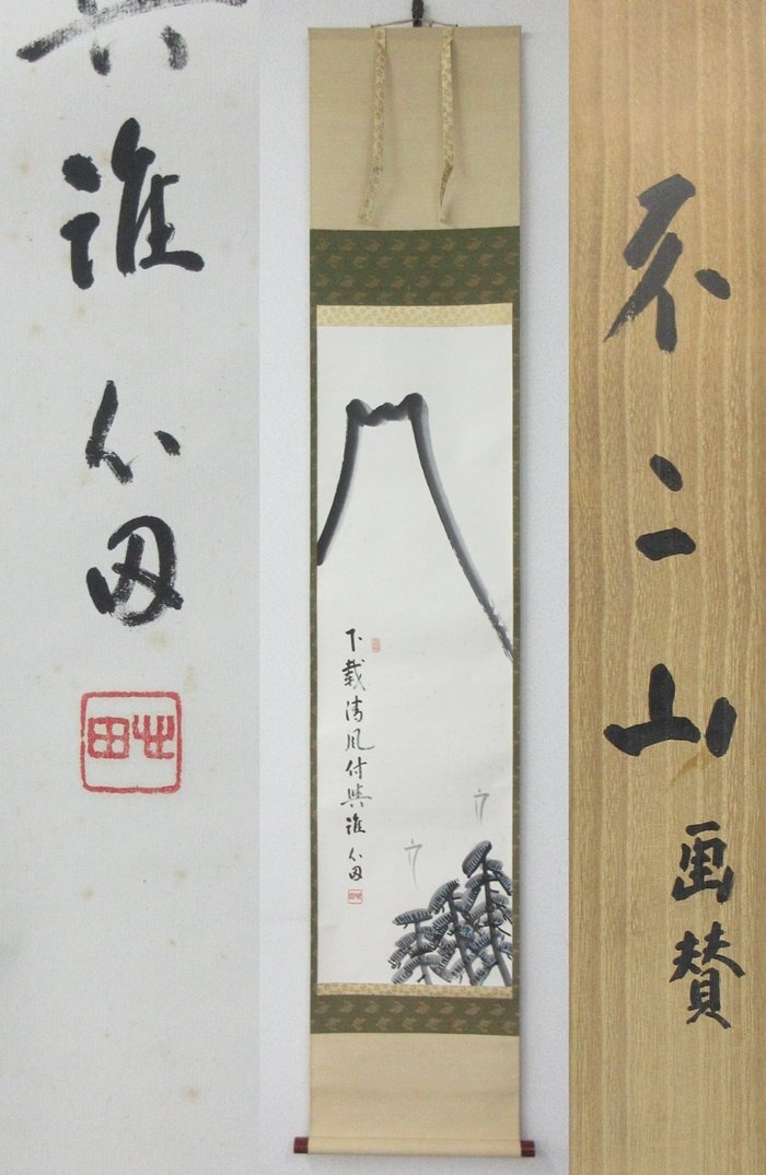 こちらは 掛軸 臨済宗 国泰寺派 管長 国泰僧堂師家 稲葉心田 不二山 画賛 富士山 共箱 です。