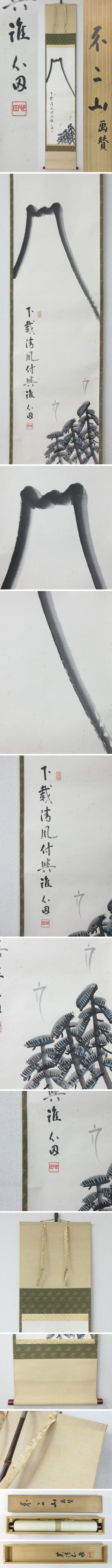 【B0916】掛軸 臨済宗 国泰寺派 管長 国泰僧堂師家 稲葉心田 不二山 画賛 富士山 共箱