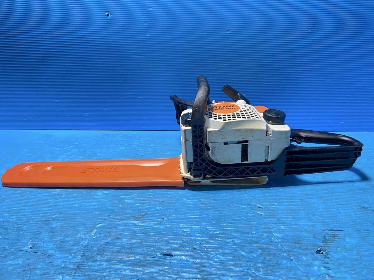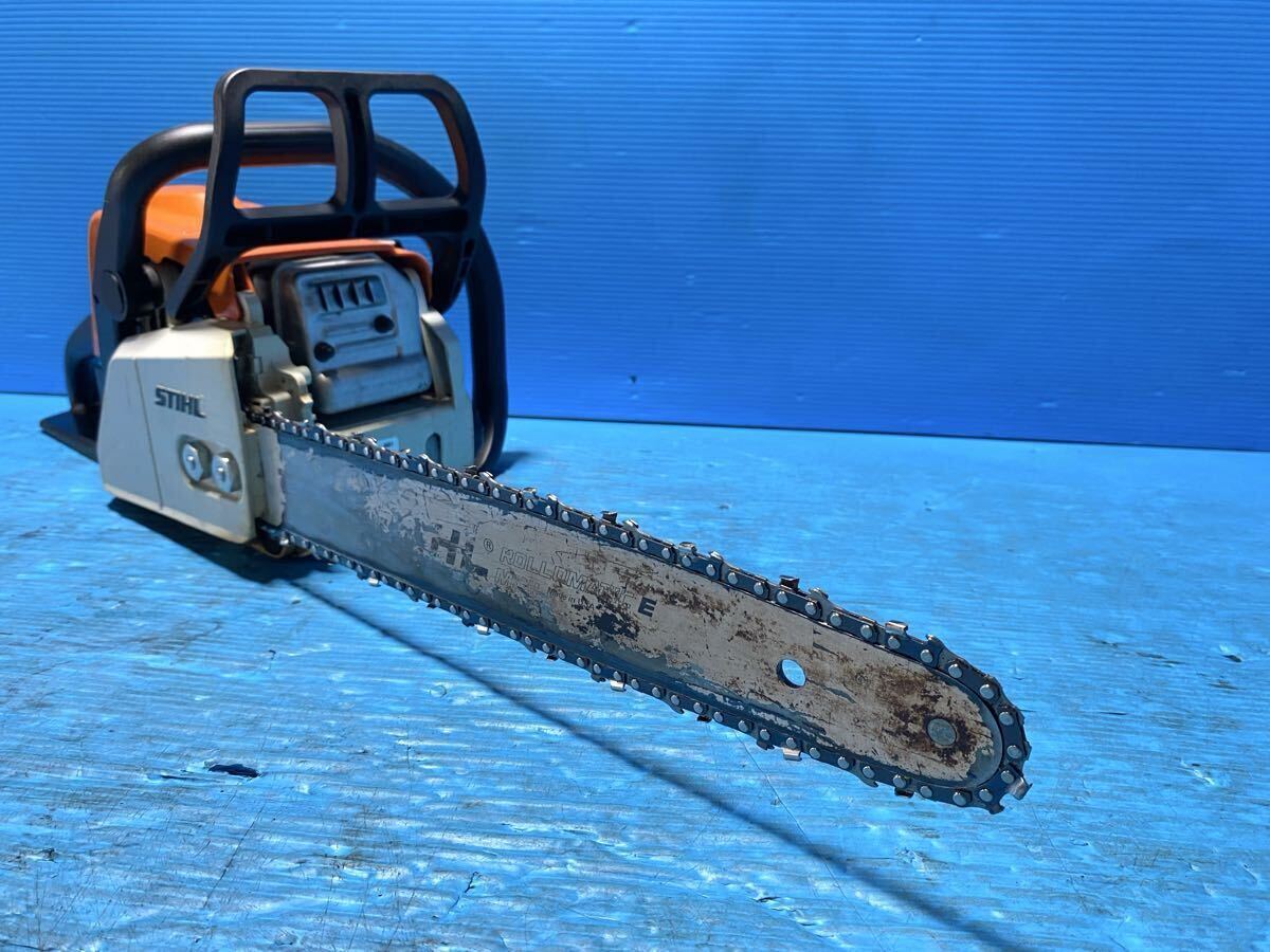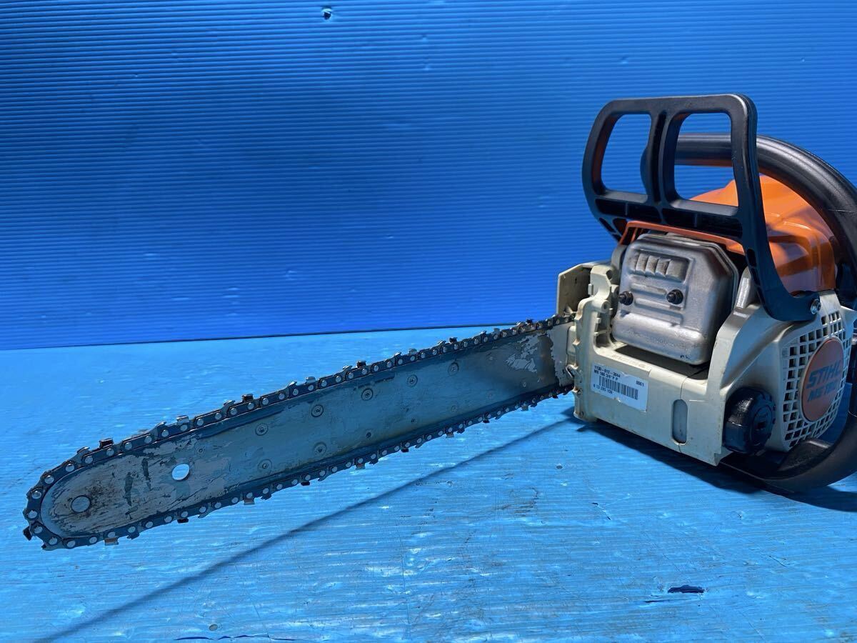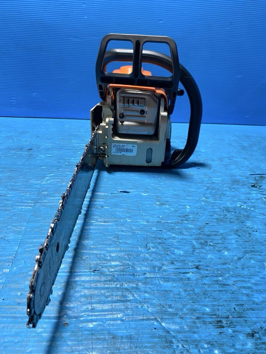 スタータノブを引くとエンジンがかかりソーチェンが回転します。