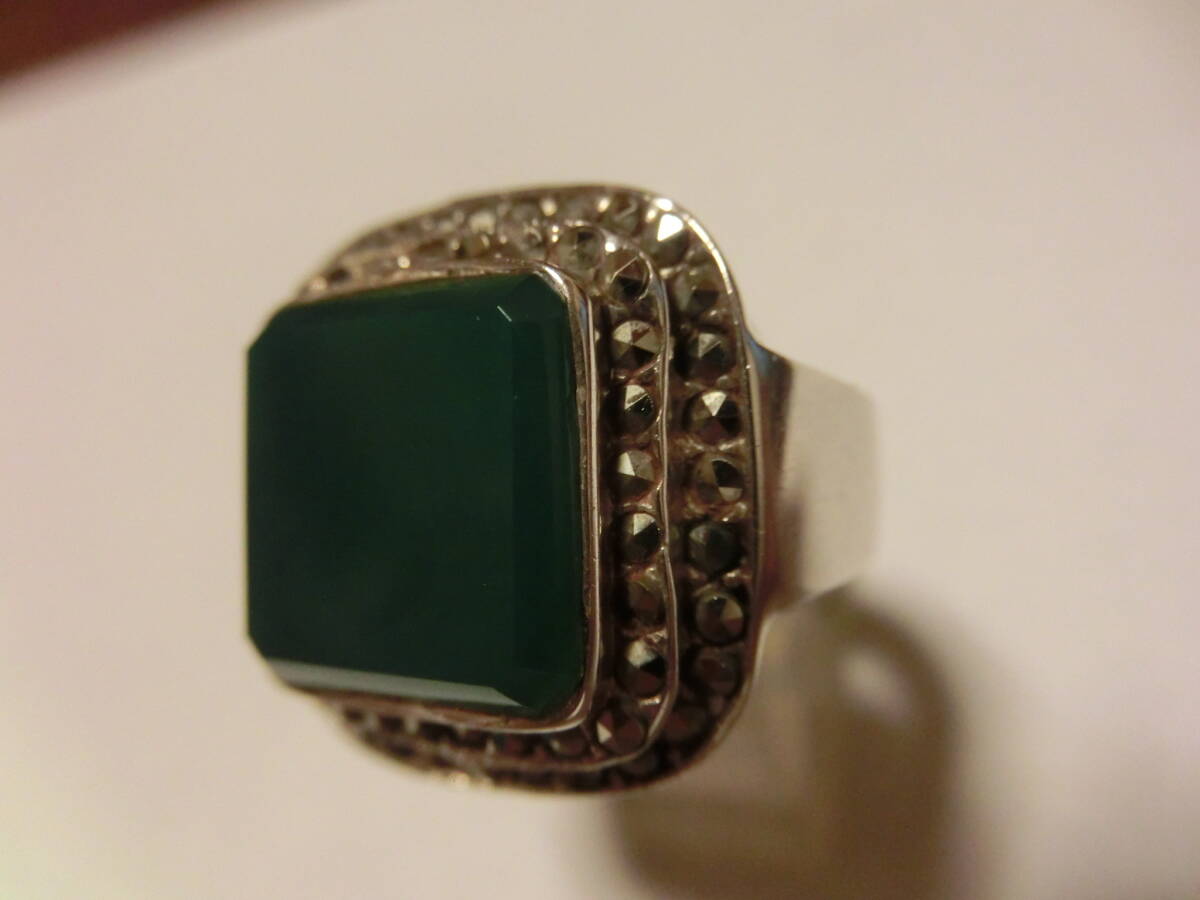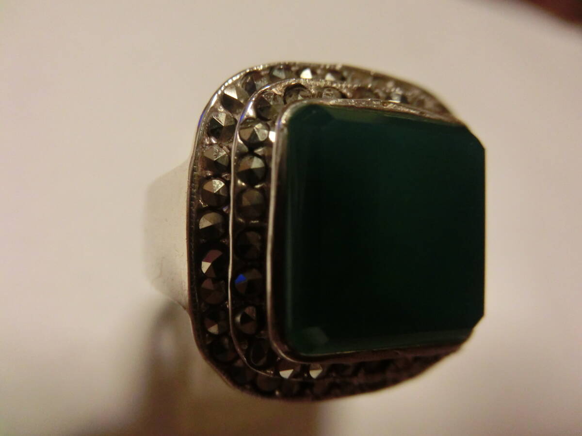 極美品、ビンテージ、緑色石メイン、マーカサイト、925刻印、サイズ15位、9.39g位の出品です。