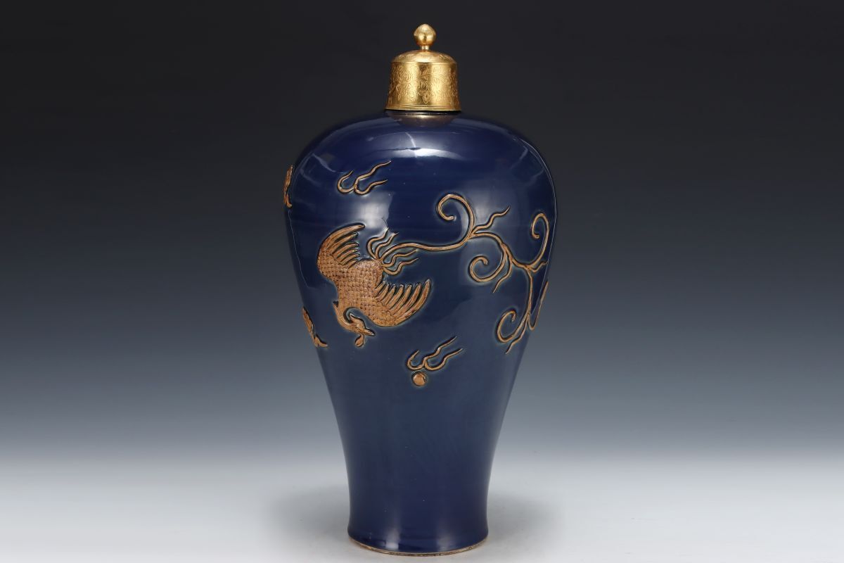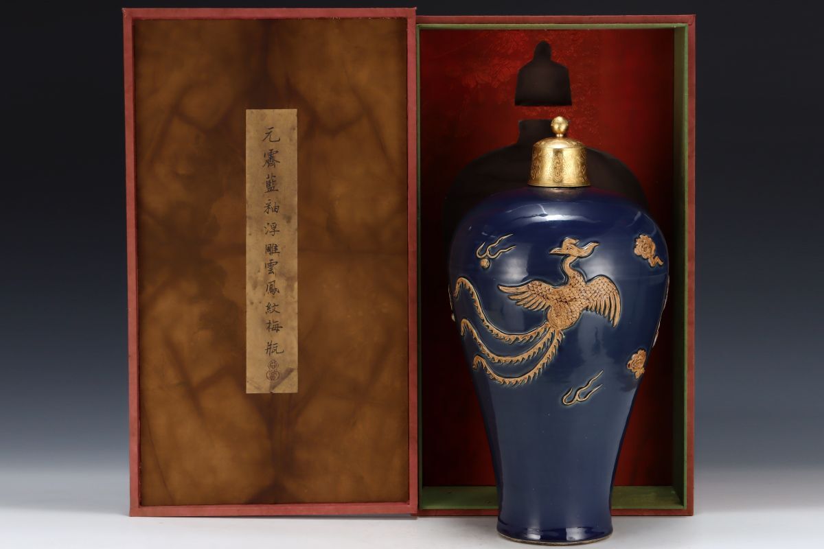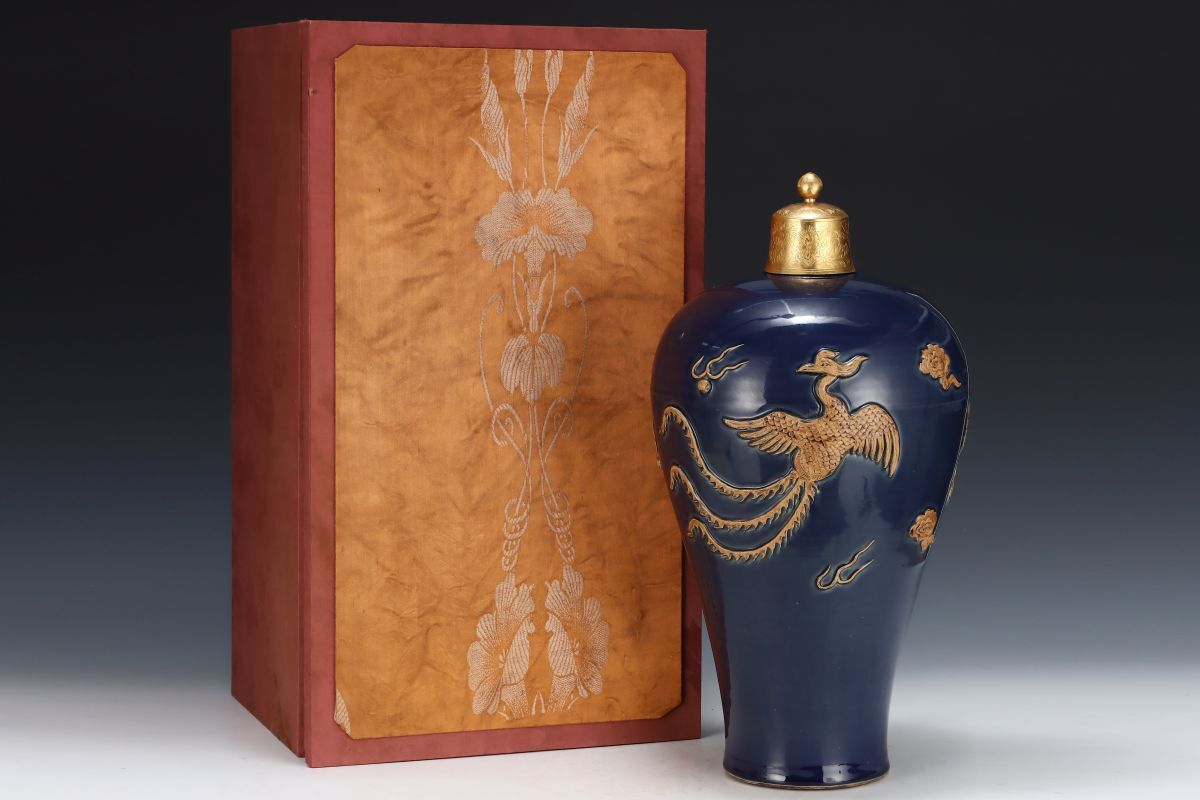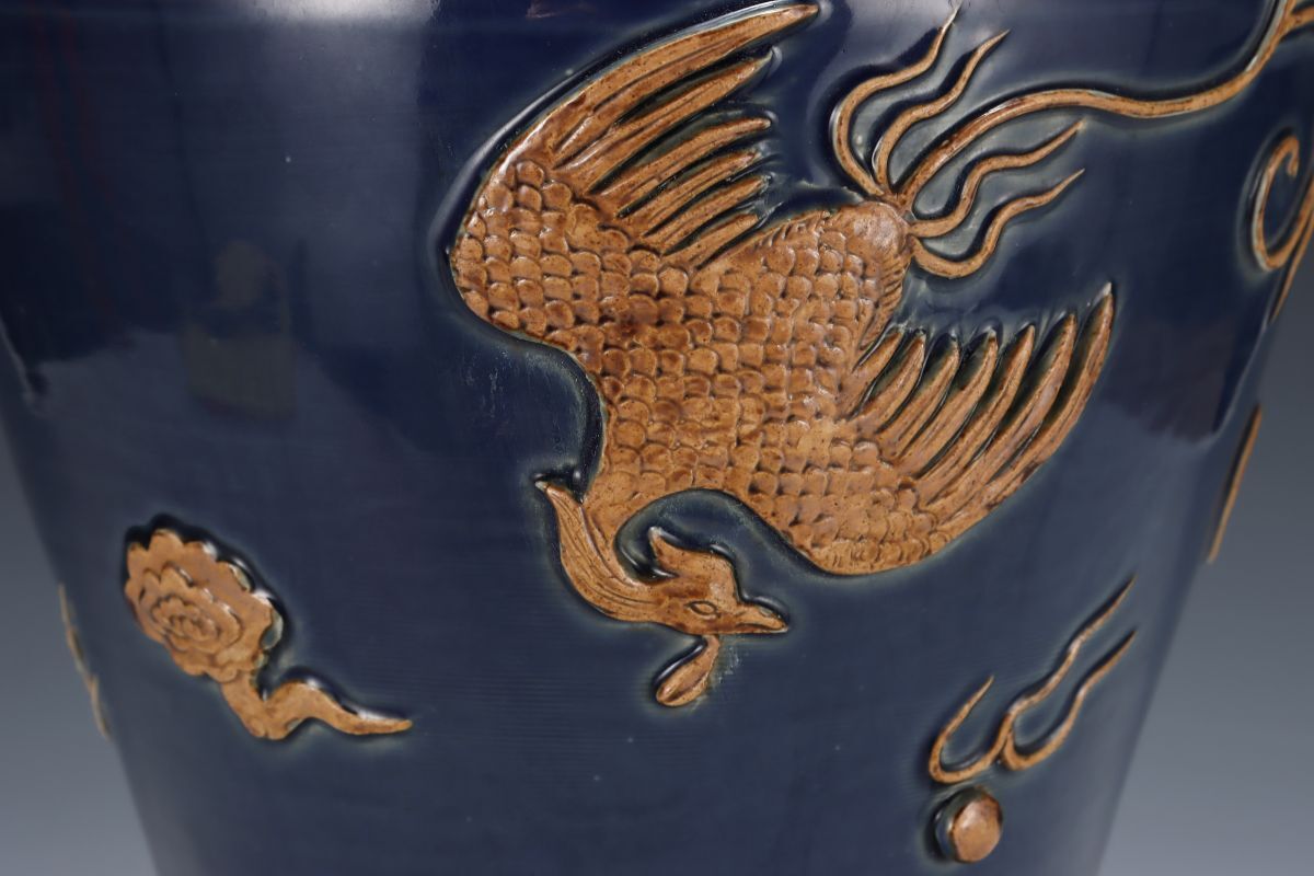 【永】元時代 藍釉浮彫 鳳紋 大瓶 古陶磁器 陶芸 皿 中国陶瓷器 唐瓷 置物擺件 古美術品 古賞物 収集 旧家蔵出 中国唐物 A13