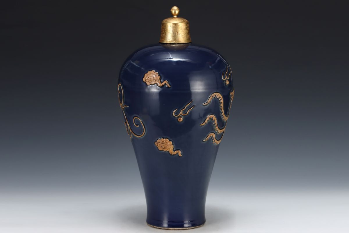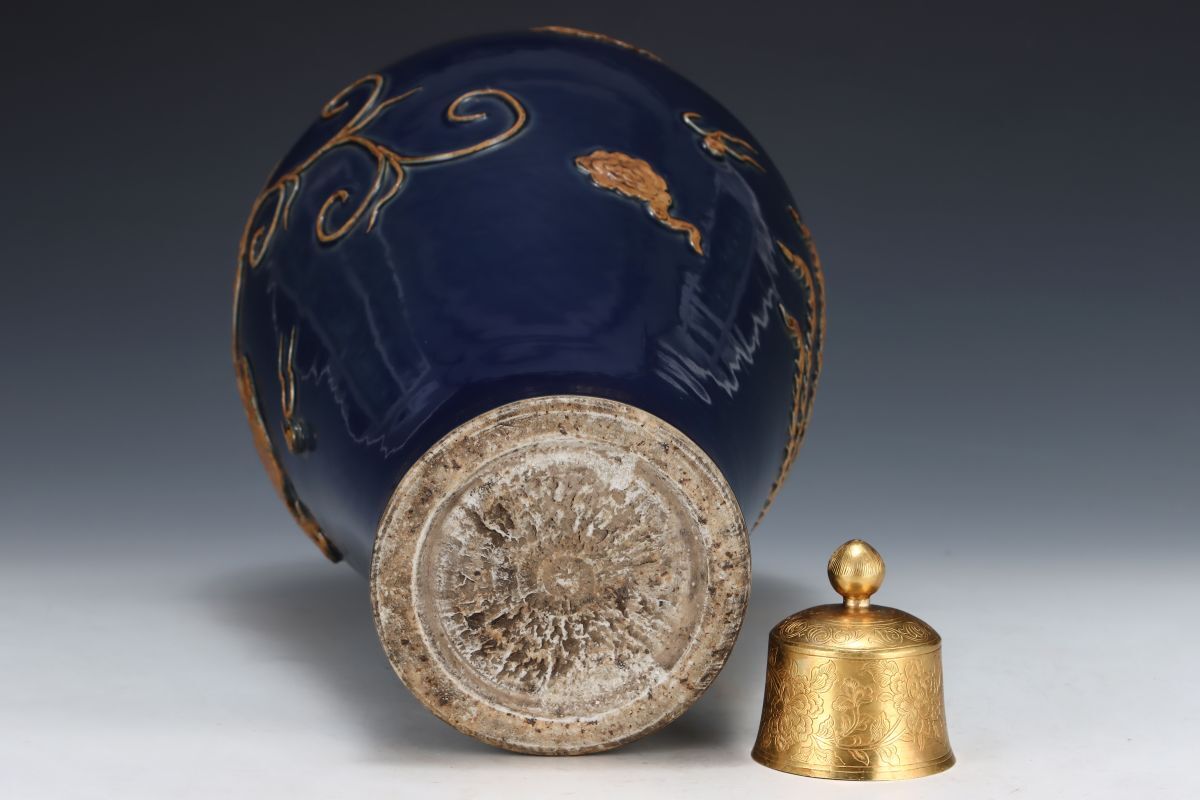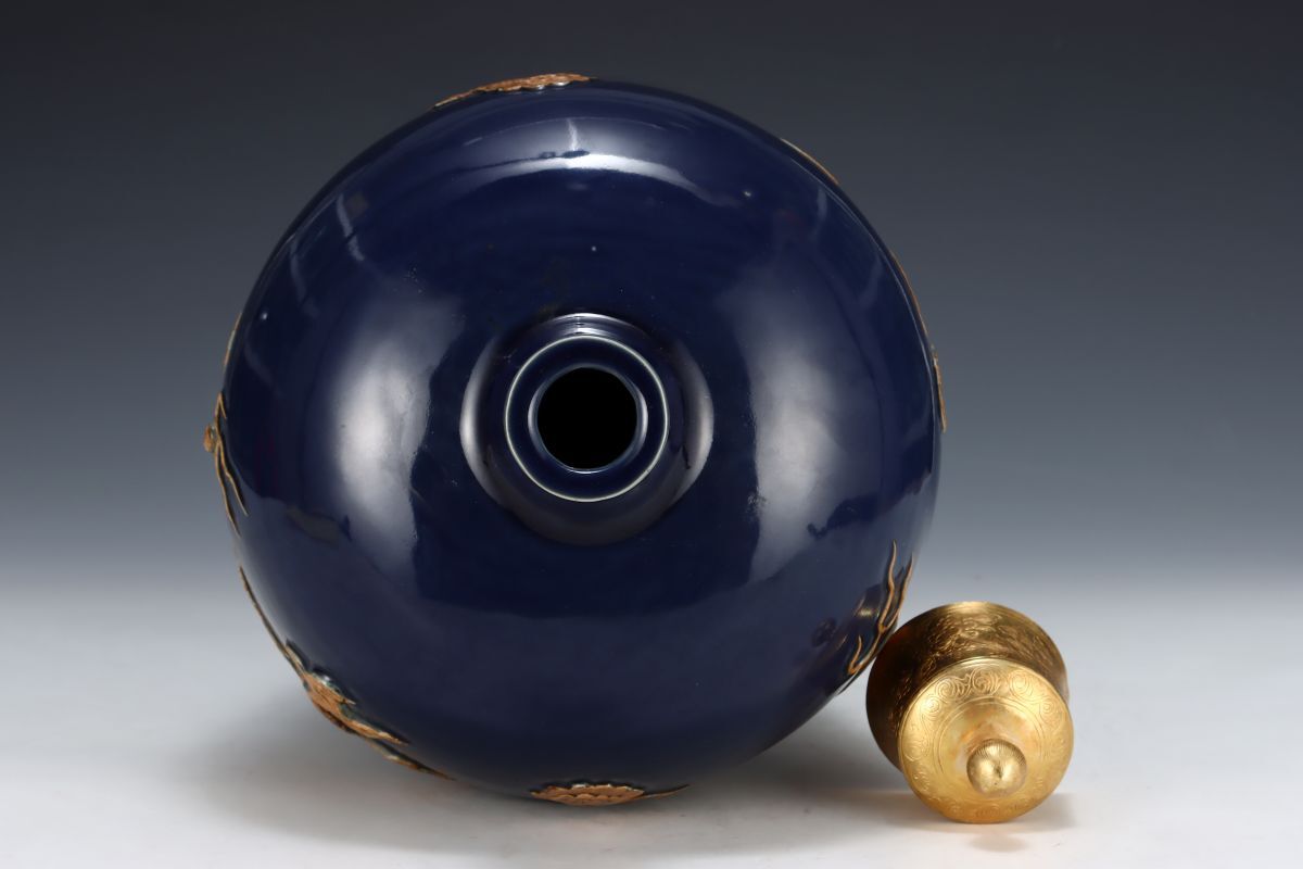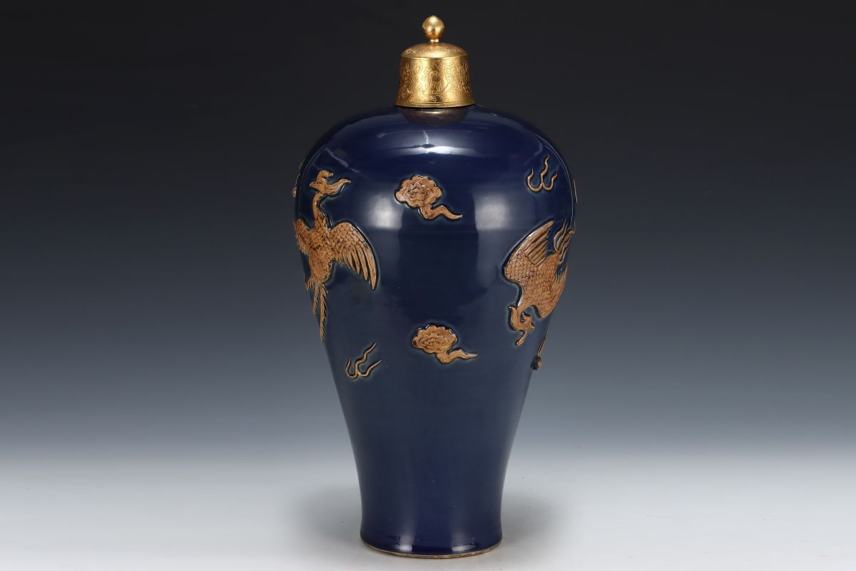 【永】元時代 藍釉浮彫 鳳紋 大瓶 古陶磁器 陶芸 皿 中国陶瓷器 唐瓷 置物擺件 古美術品 古賞物 収集 旧家蔵出 中国唐物 A13