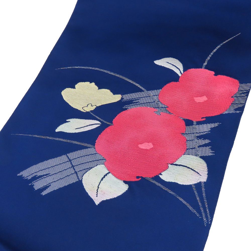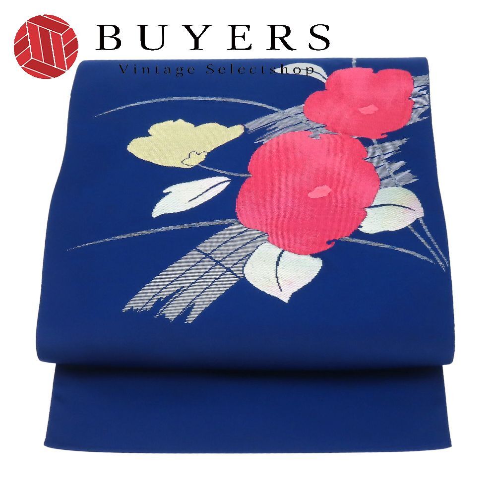中古 名古屋帯 八寸 正絹(金銀糸除く) ブルー系 ピンク 松葉仕立て カジュアル 和装 呉服 和服 きもの レディース 女性