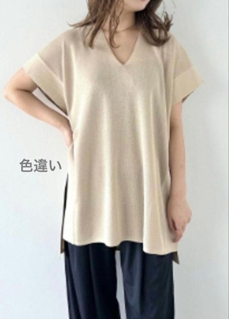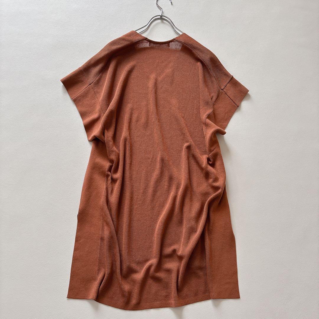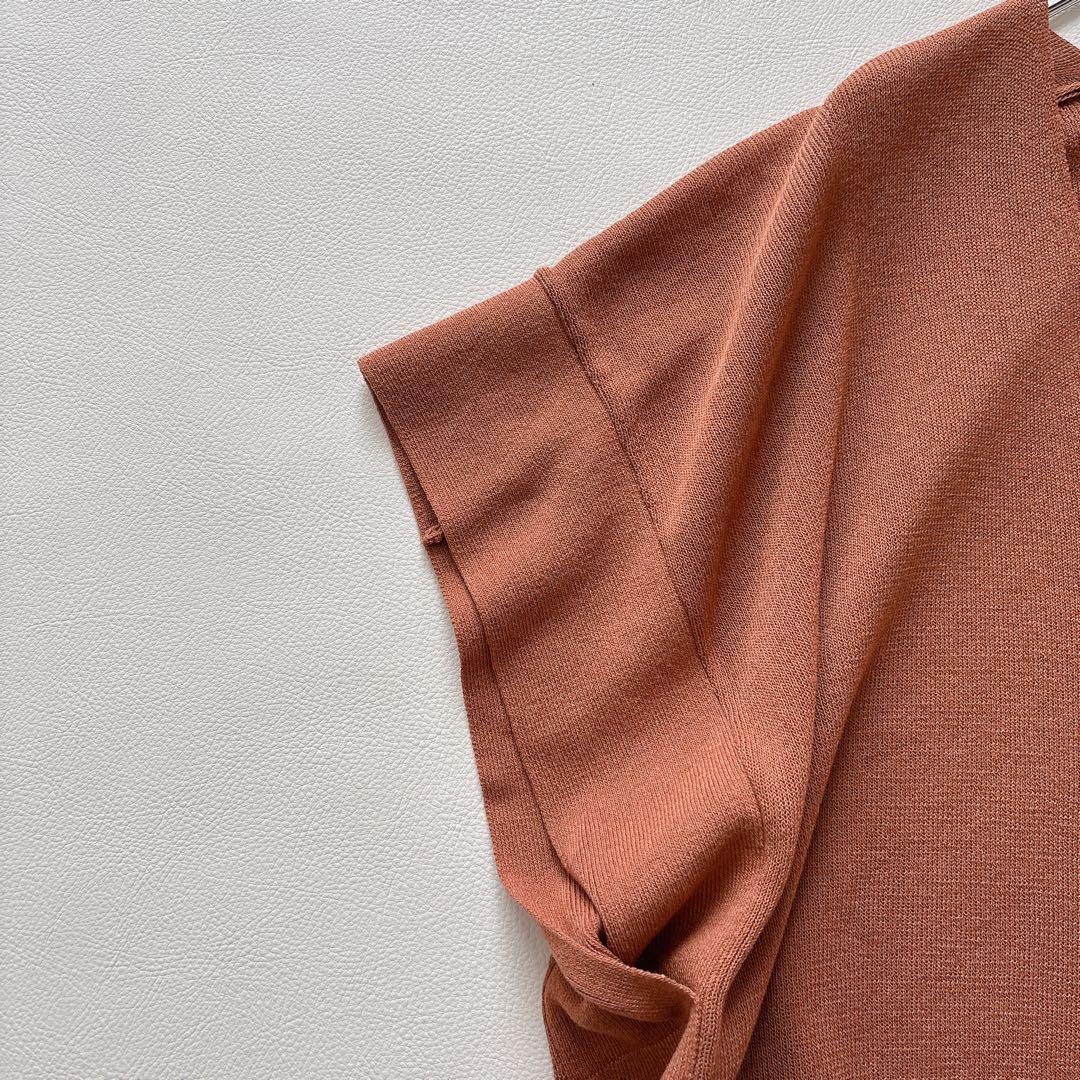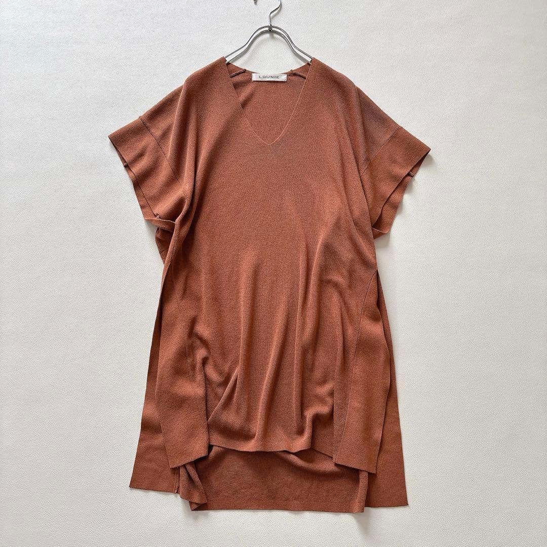 ルーニィ チュニック丈 ニット プルオーバー Vネック 半袖 テラコッタ LOUNIE
