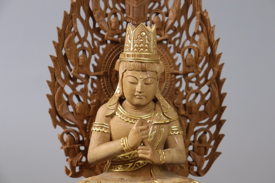 仏教美術 有馬頼底 作 白檀彫 大日如来坐像 共箱 木彫 仏像 細密細工 古美術品[d1123]