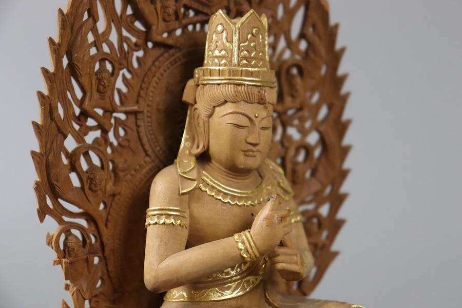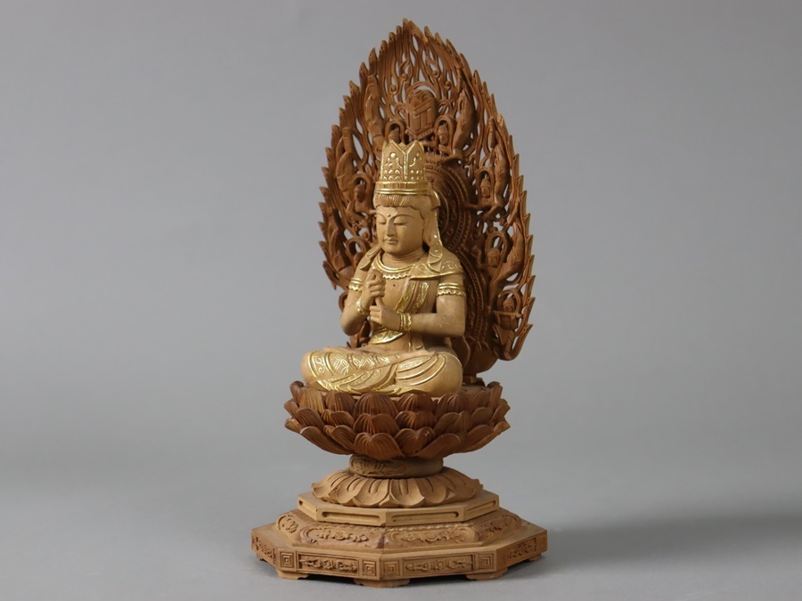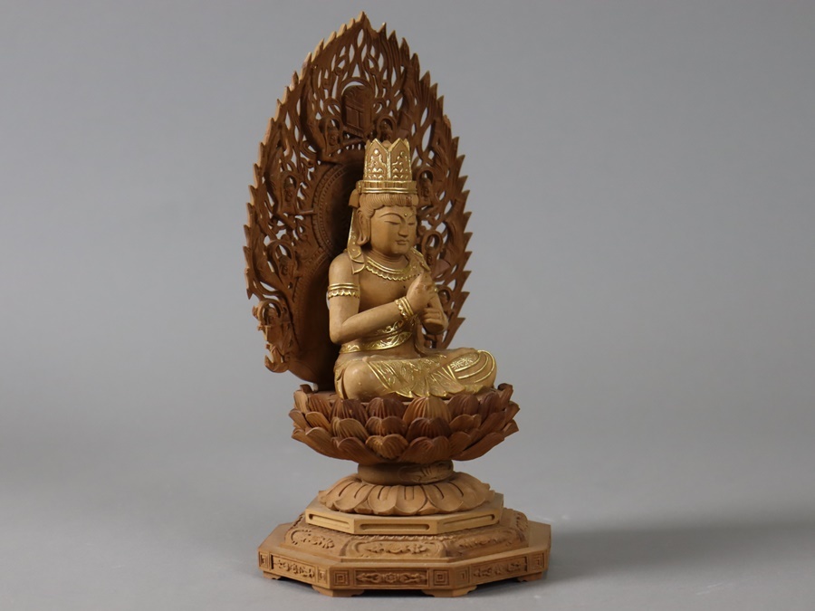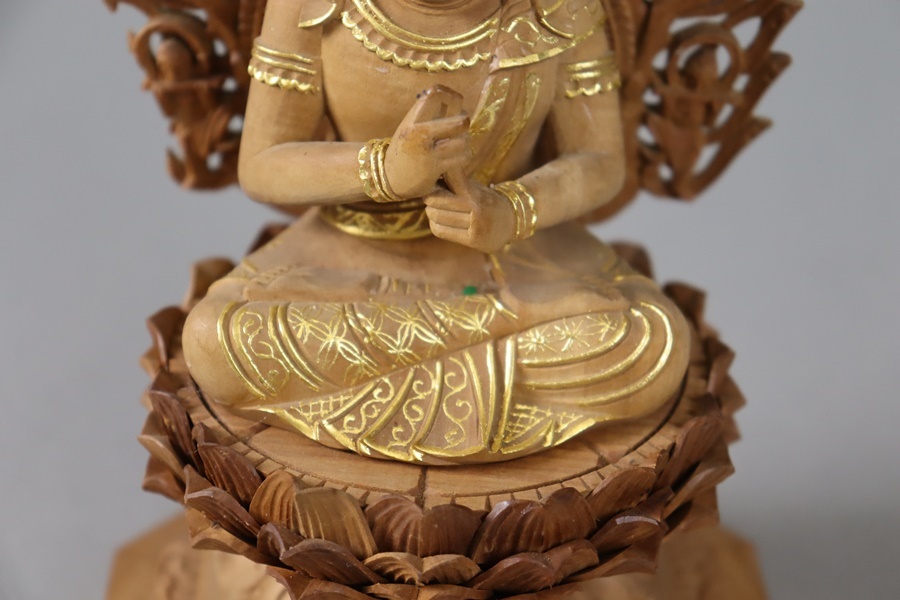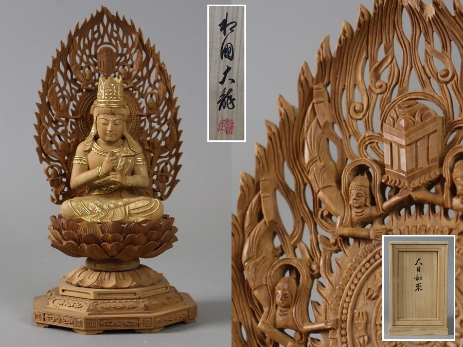 【仏教美術 有馬頼底 作 白檀彫 大日如来坐像 共箱】