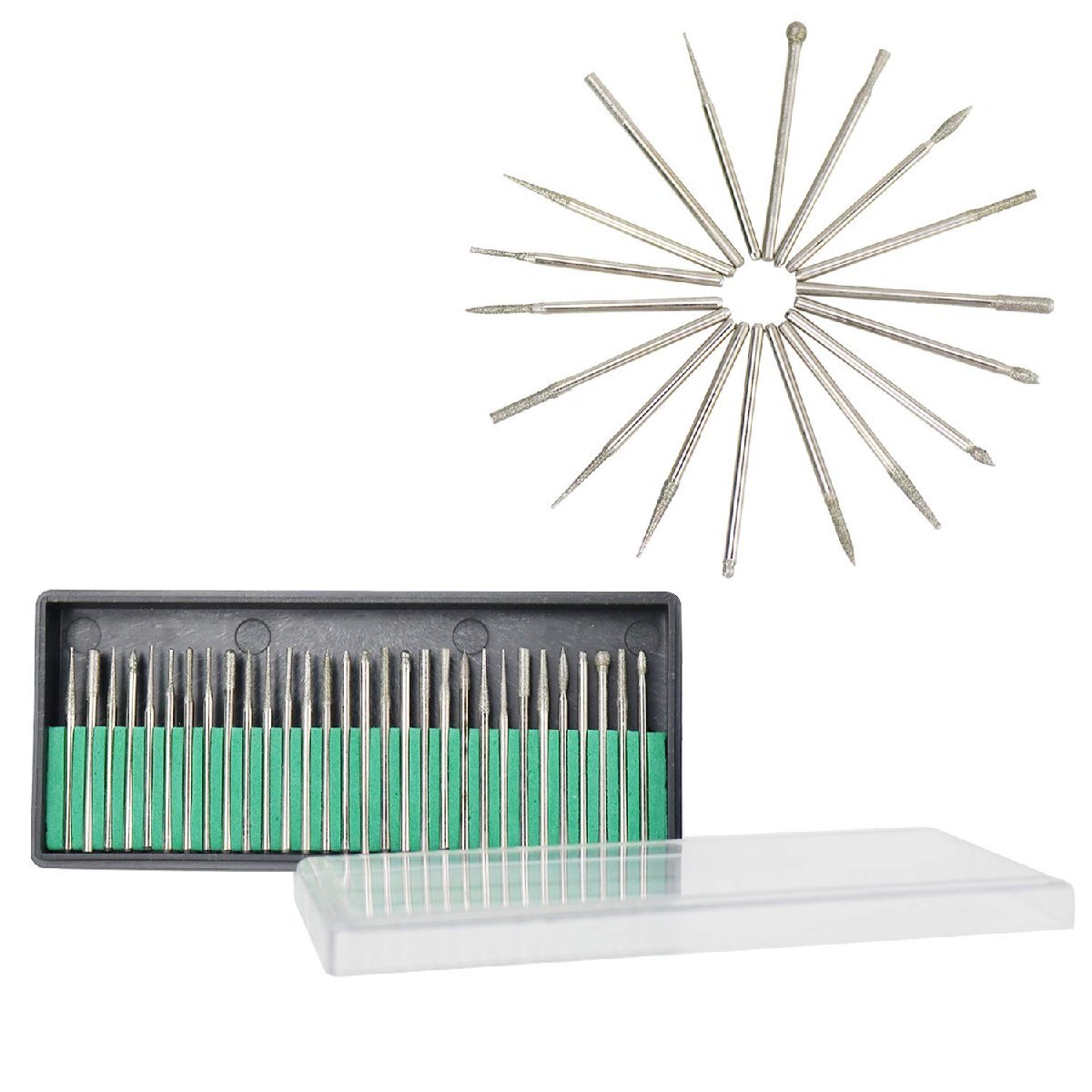ルーターや電気ドリルなどの先端パーツダイヤモンドを電着しており、切削性、耐久性に優れています超硬合金・セラミック・石材・コンクリート・ガラスなどの切削、石材やガラスの面取り、ガラス彫刻にも・軸径:2.35mm・全長:45mm・本数:30本