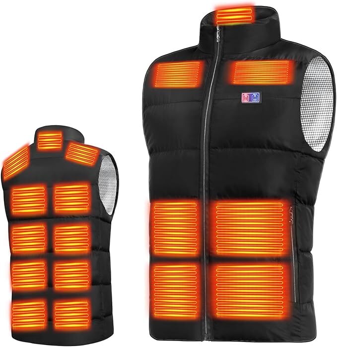 前に6つ、後ろに11つの内蔵ヒーターを備え、寒い季節でも快適に暖かく過ごせる発熱ベストです。