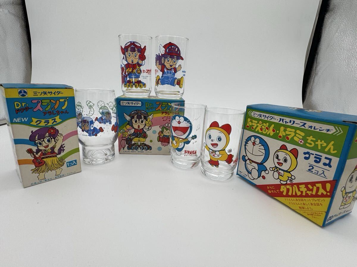 三ツ矢サイダー バヤリースオレンヂ ドラえもん ドラミちゃん アラレちゃん 昭和レトロ 当時物 レトロ コップ ノベルティ グラス