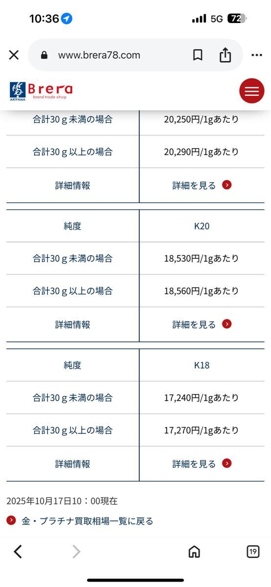 18金買取価格の上昇に伴い毎月15日と毎月末日に随時値上げをする場合があります。値上げはしますが現在価格の475000円から値下げはしません。