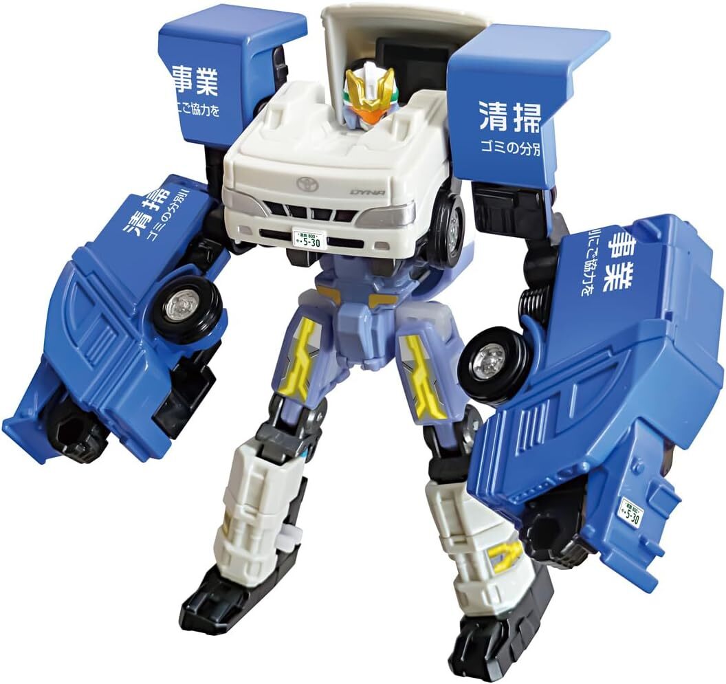 アーマービークル「トヨタ ダイナ 清掃車」が清掃ジョブロイドと合体し、清掃車のロボット「クリーンブレイバー トヨタ ダイナ 清掃車」になるぞ!