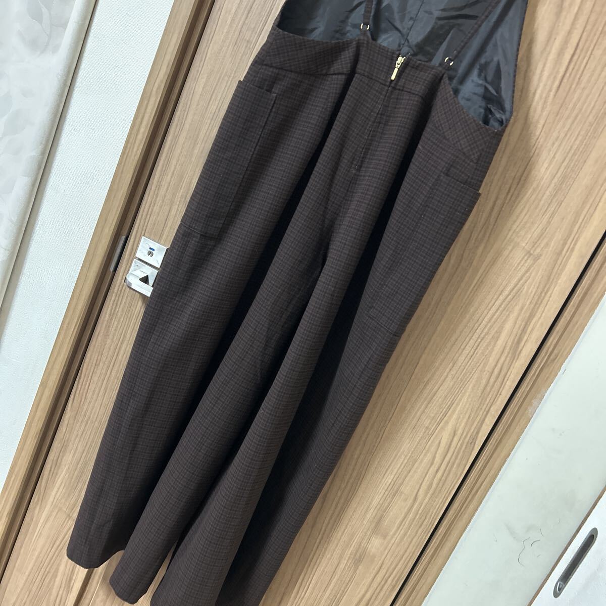 スローブイエナ チェックエプロンオールインワン サロペット  ISLOBE IENA サロペット パンツ チェック 40 茶