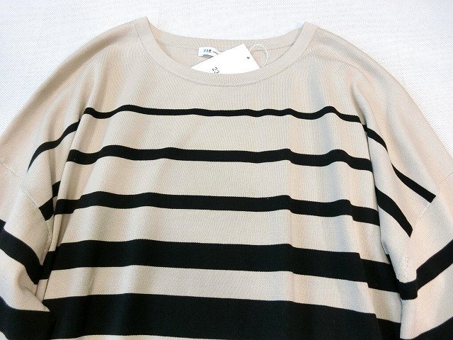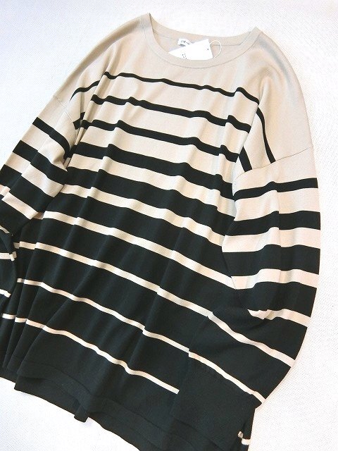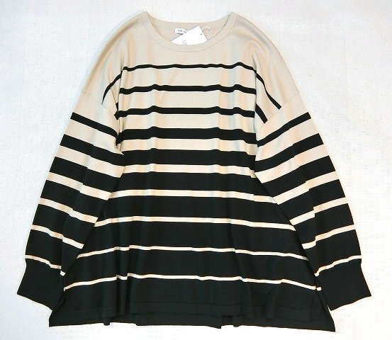 ■23区大きいサイズ44プレミアムビオコットンボーダーワイドニット/ベージュ×ブラック20,020円■