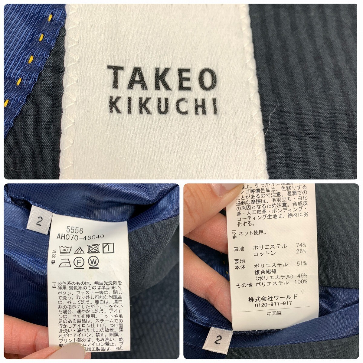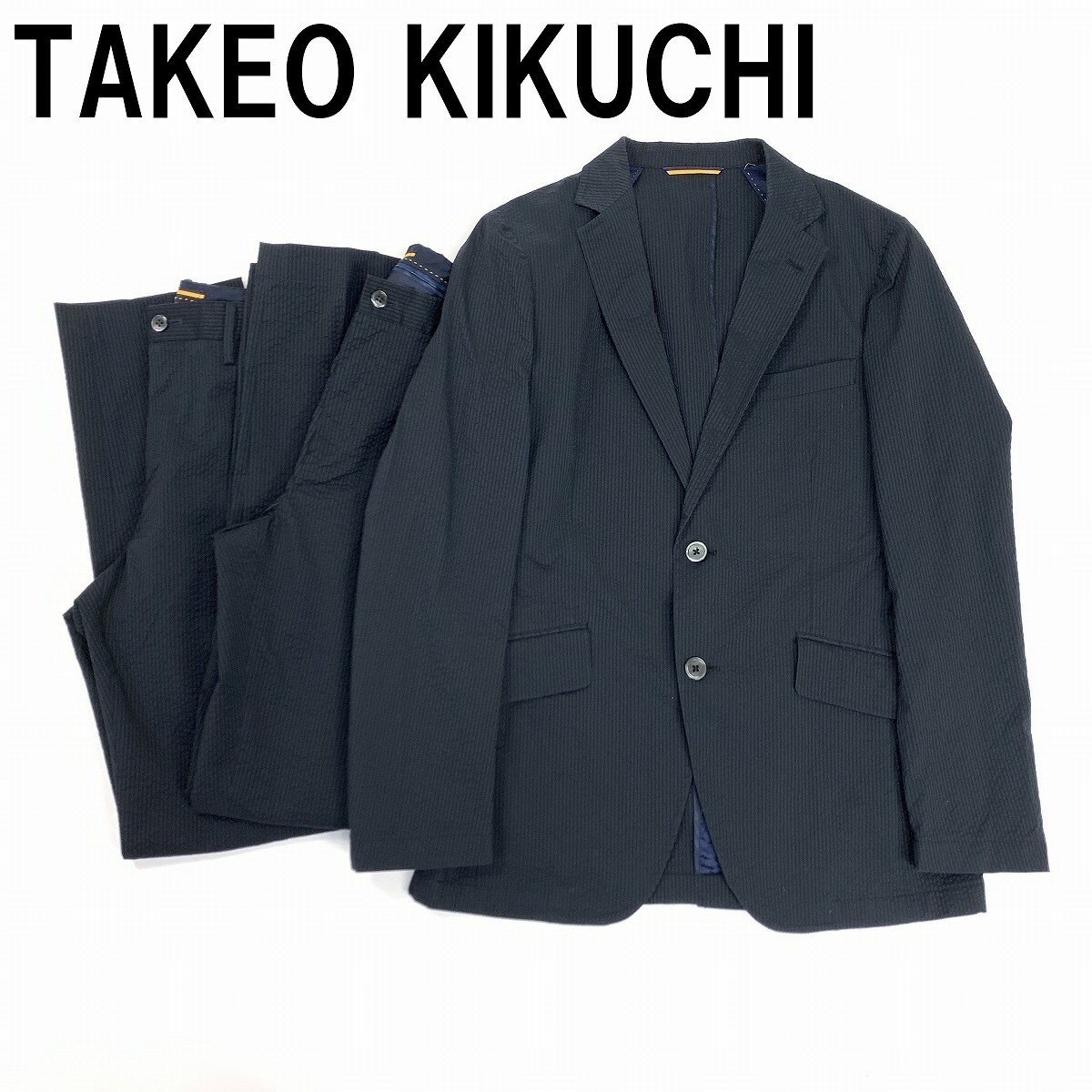TAKEO KIKUCHI タケオキクチ スーツセット 3点 スラックス テーパード 綿 コットン 紺 ネイビー 2 YC1258