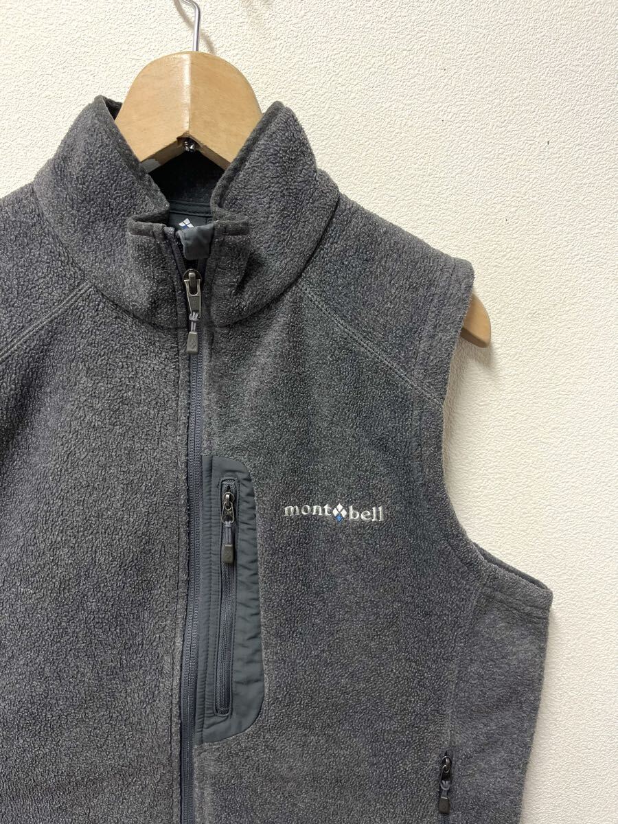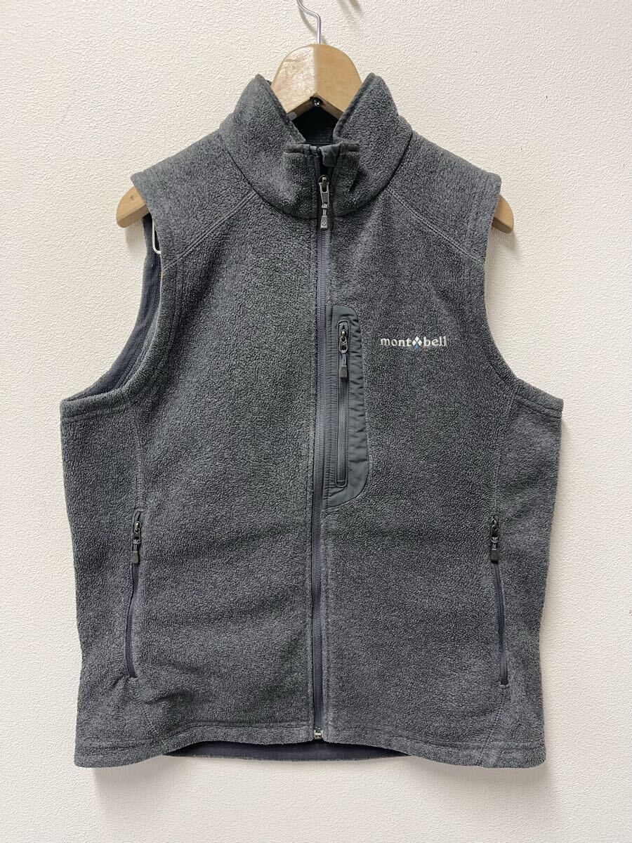 モンベルのフリースベスト。使いやすいグレーです。メンズだったと思いますが妻が使用してました。