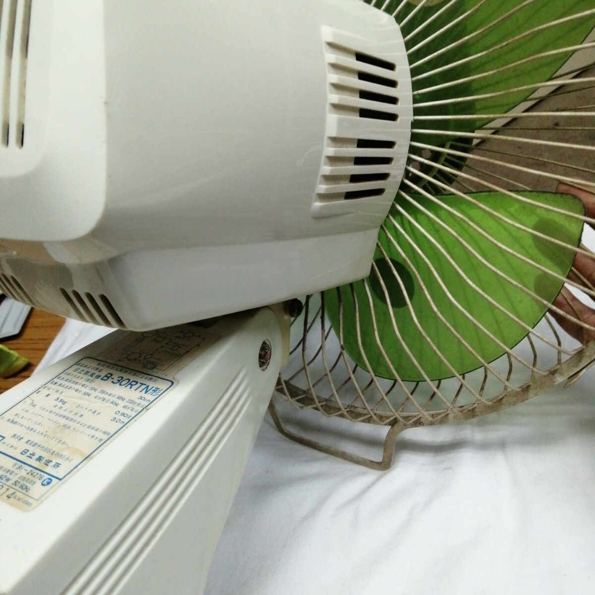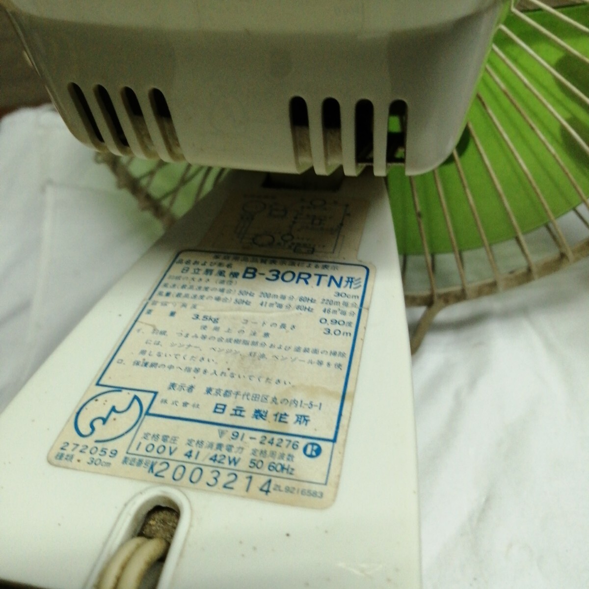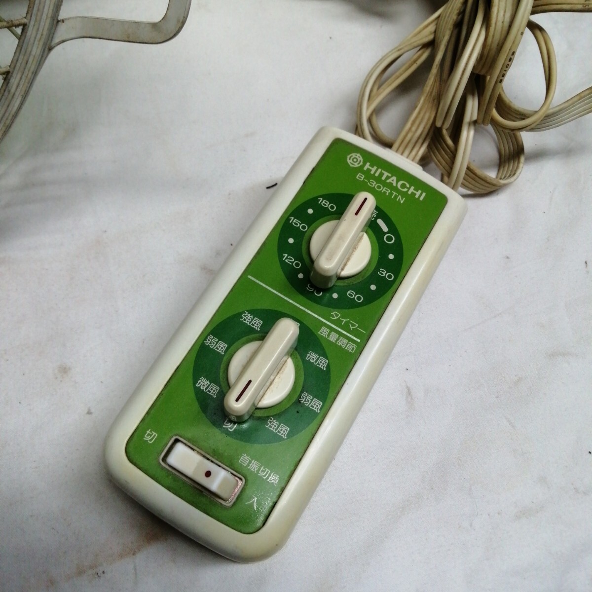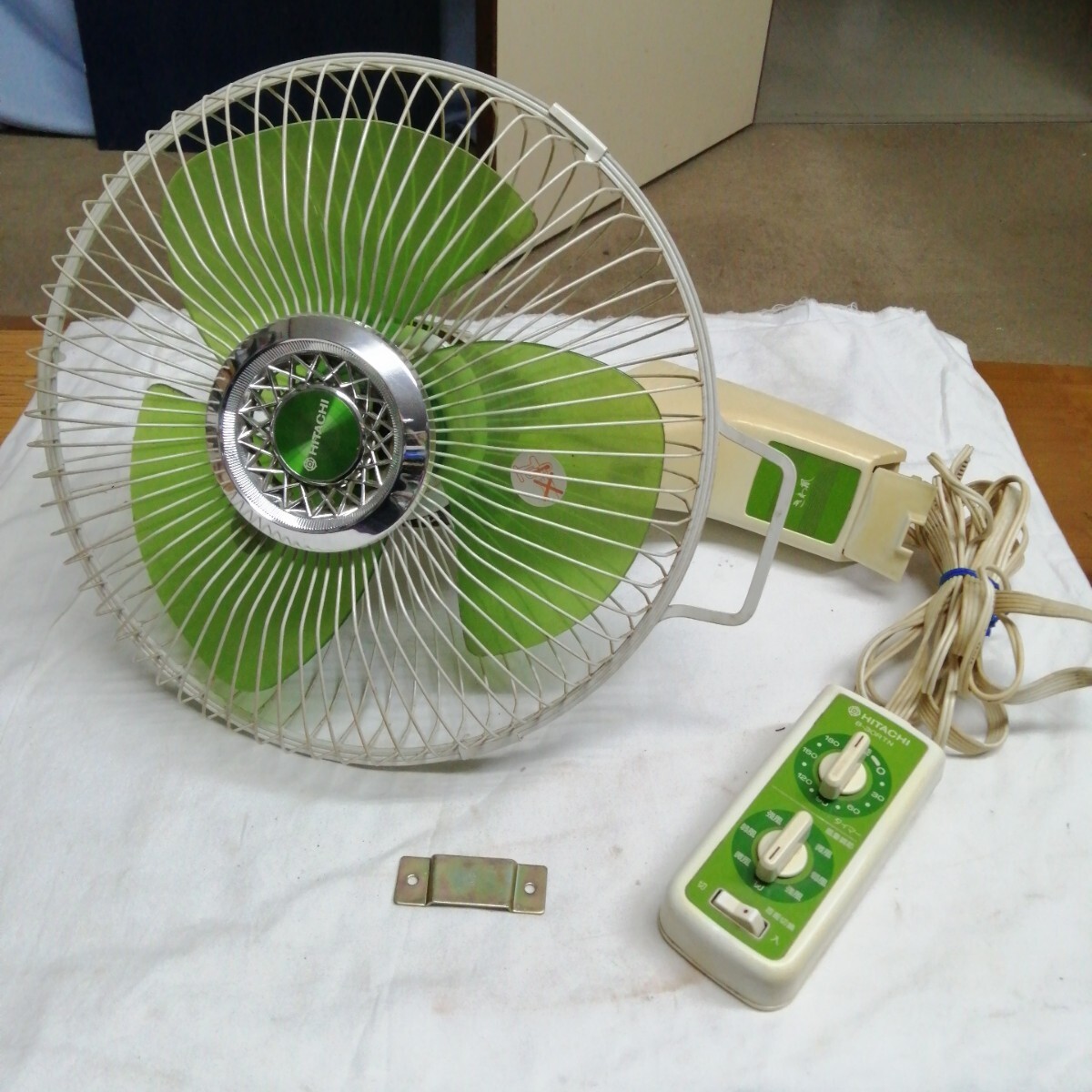 アンティーク 日立製作所 B-30RTN 扇風機 30cm HITACHI 壁付 きわ風 昭和レトロ 緑 当時物 壁掛け 動作確認済