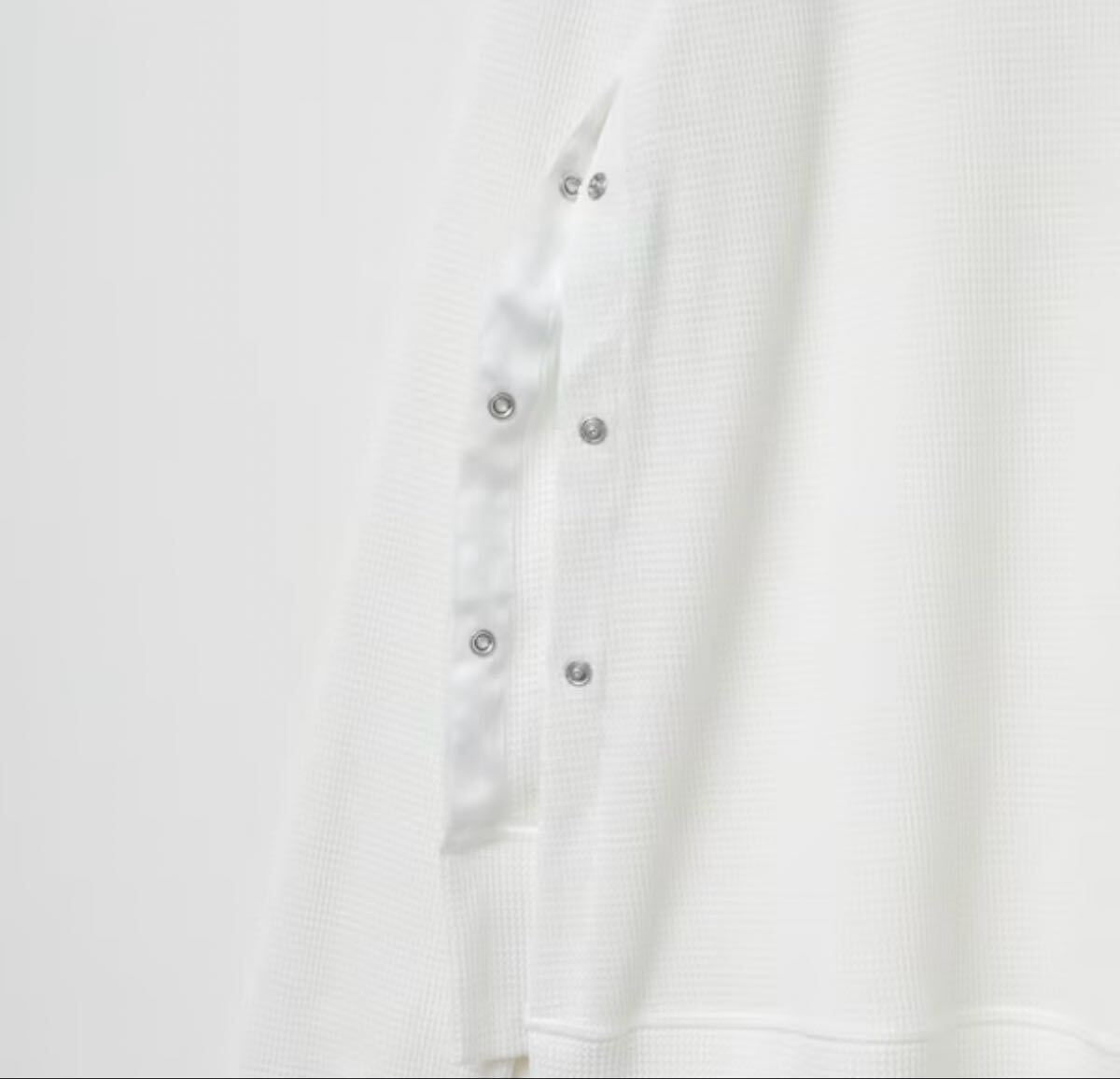 凹凸感のあるワッフル素材で肌離れが良く、快適に着用いただけます。デニムやレザースカートなど、カジュアルなボトムスとのスタイリングがおすすめです。