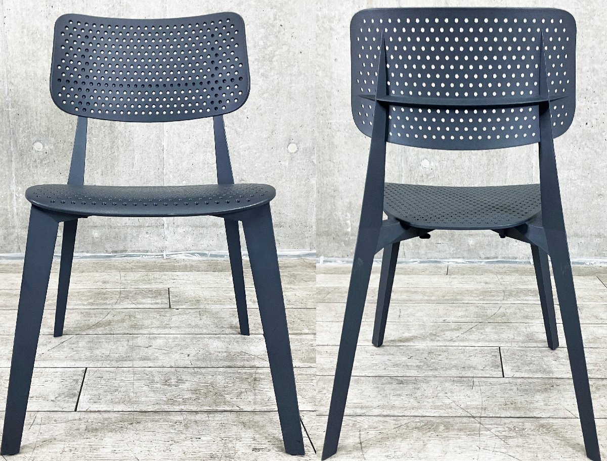 | ■2015年に誕生したイタリアの新鋭家具ブランド『TOOU / トゥー』より、1950年代の学校で使用されていた、質素で機能的な素材を用いた伝統的な木製のイスの座り心地。 そんな、子ども時代の記憶からヒントを得た形状が、21世紀版の積み重ねて保管できる一体型のプラスチック製イスに生まれ変わりました。 背面と底面にある星に似た三角形が構造部分の耐荷重性を強調し、座面と背もたれが持つ人間工学的な柔らかさとのコントラストが美しいかたちになっています。 新品定価:¥42,900(税込み) ■色/ブラックxグレー ■サイズ/W575 x D535 x H820 450 ■状態/全体的に使用に伴う細かいスレ傷がございます。(写真参照) 雰囲気を損ねるような目立つ大きなダメージもなく、まだまだ気持ちよくお使いいただけます。 |