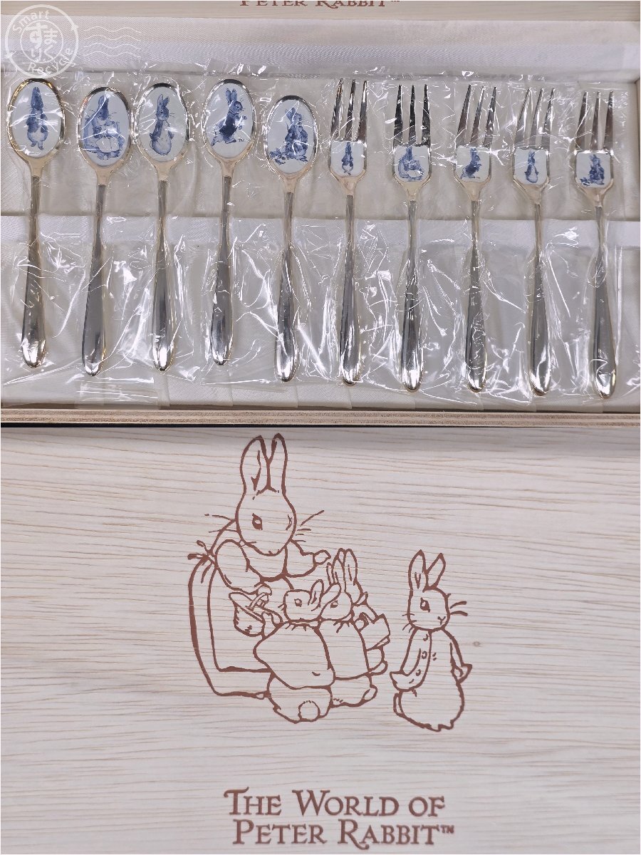 ▽ ピーターラビット カトラリーセット スプーン フォーク 木箱 食器 洋食器 キッチン用品 箱入り 中古品 used品 現状品 | |||