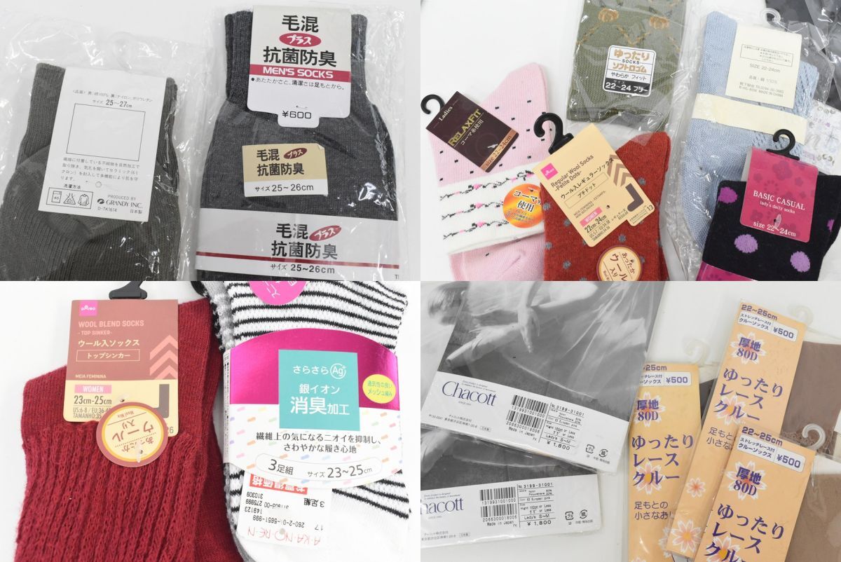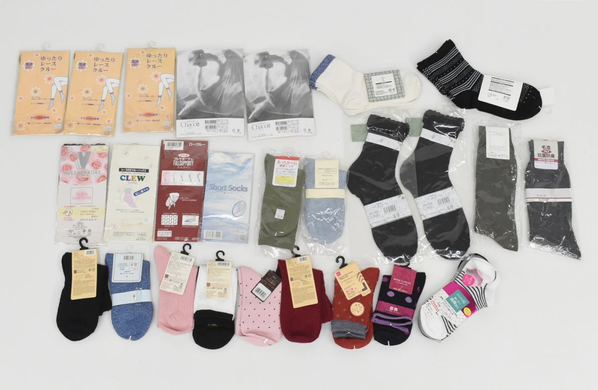 (1M 1015H7) 1円~ 未使用 ソックス 靴下 26足セット メンズ レディース ストッキング ハイソックス サイズ いろいろ 大量 まとめて