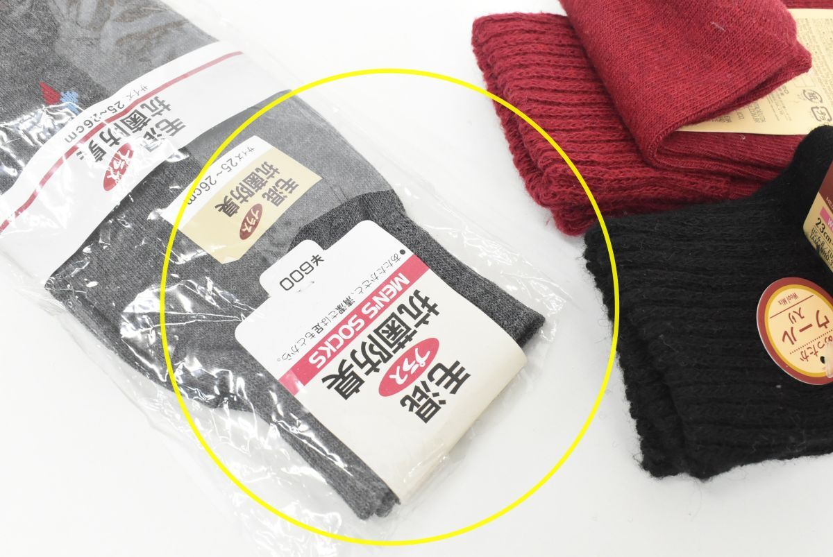 一部の商品には【画像8】のようなパッケージの破損、ソックスの毛羽立ちなどがあります。