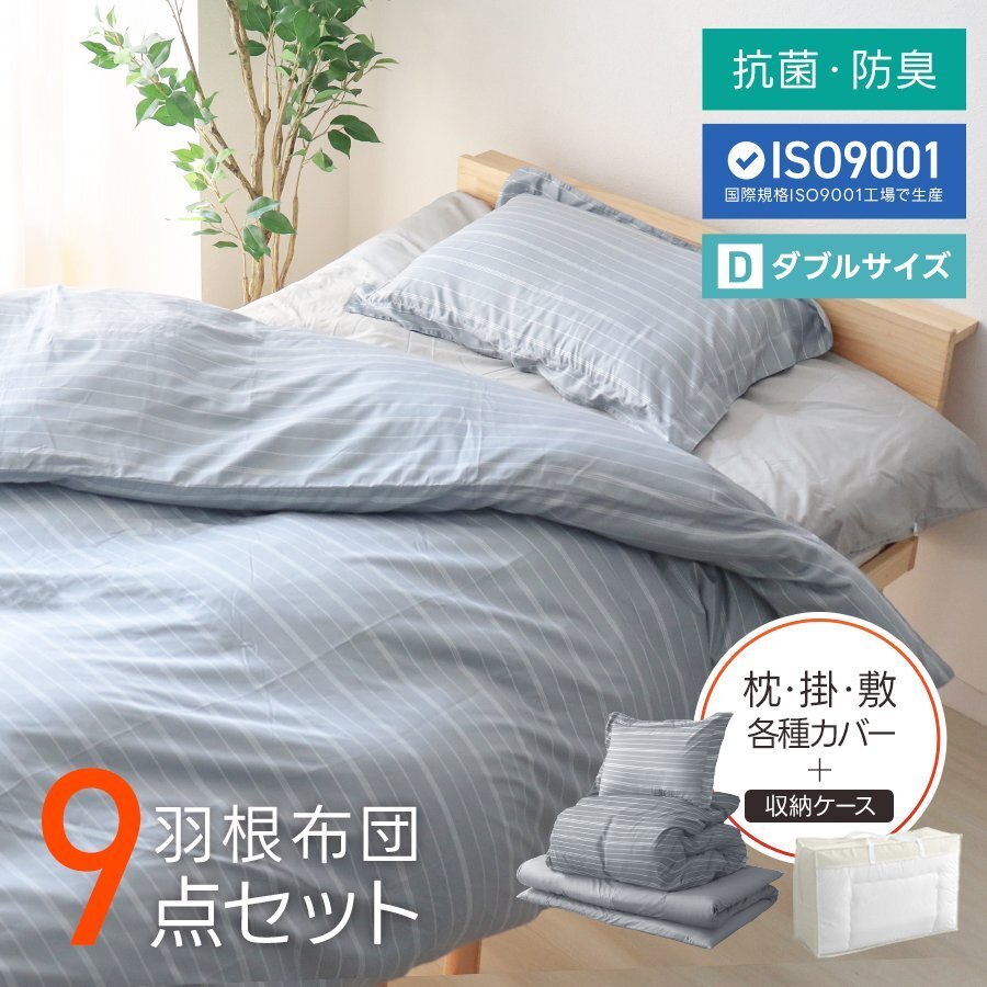 | ISO9001認可工場で生産された安心の品質! 届いてすぐ使える寝具8点+収納ケースの9点セットです。 掛け布団は高級布団などにも使われるフェザーを100%使用! 冬場は暖かく、夏場は蒸し暑くなりにくいため、オールシーズン快適に過ごせます。 敷き布団はフローリングや畳の上に直接敷いても痛くないよう、 芯のある固綿を、ふんわり柔らかな中空ポリエステル綿でサンドイッチした三層式構造を採用! 底付き感を感じないボリュームで、快適な寝心地とふんわり優しく包みこまれる気持ちよさを実現! また、抗菌防臭加工が施されており、いつでも清潔に使えます。 \すぐ使えるから、こんな方におススメ♪/ ・一人暮らしや新生活を始める方 ・新生活を始める方 ・来客者用の布団一式を考える方 ・布団、寝具の買い替えを考える方 ・社員寮など業務用として考える方 【商品内容】 掛け布団、敷き布団、まくら×2、掛け布団カバー、敷き布団カバー、まくらカバー×2、収納ケース 【商品詳細】 カラー:ストライプグレー サイズ:ダブル(詳細は画像参照) 素材:ポリエステル、フェザー |