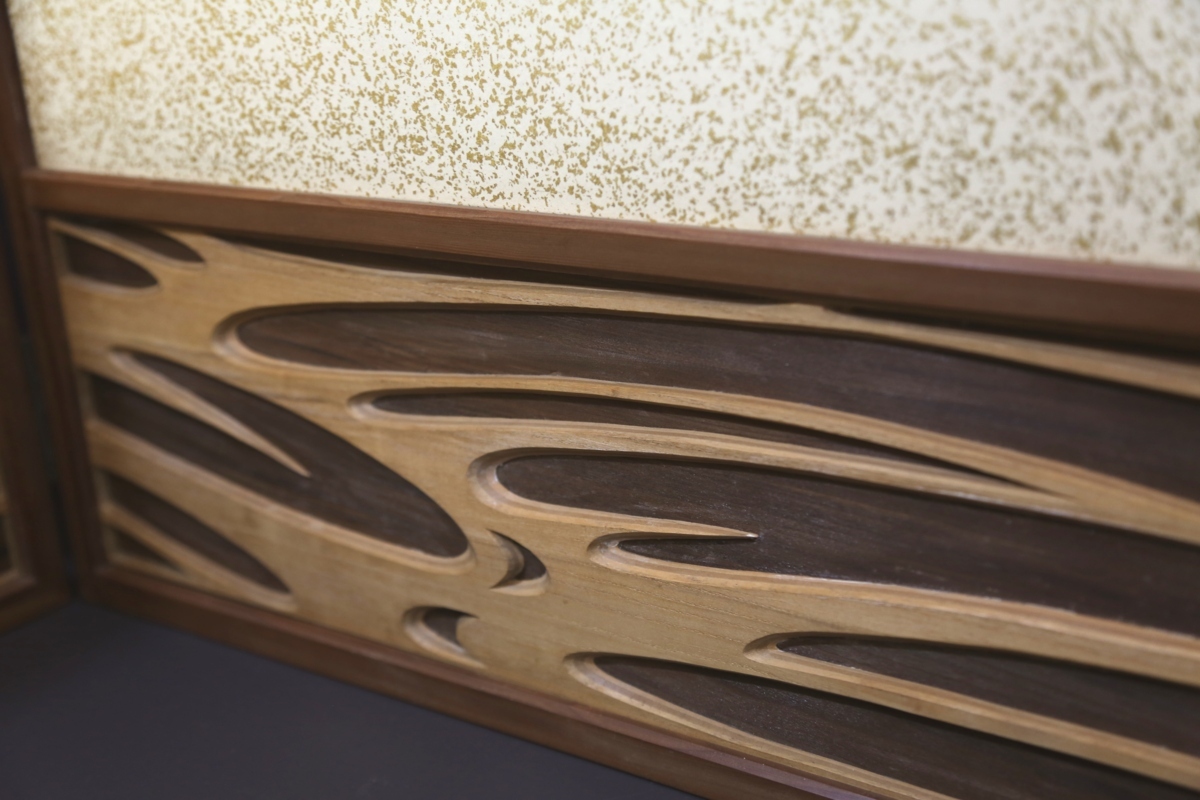 ★★★ アンティーク 在銘 木枠一位材 流水 二枚折り 風炉先 ★★★ 134
