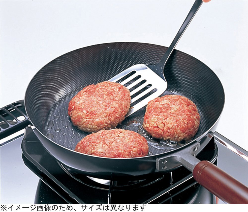 説明 より ●鉄鍋の特徴と、革命的な新技術スーパーエンボスNF加工の融合が美味しい料理を実現 ●【スーパーエンボスとは】 金属表面に無数の凹凸を浮き立たせた特殊加工金属。素材と鋼板の間に絶えず油が回るため、こげつきやこびりつきの発生する恐れが格段に減る。しっかり焼けて、こびりつきにくい。美味しい料理のために生まれた革新的な加工法 ●【料理がこびりつきにくい】 表面の無数の凹凸により、真平らな面に比べて料理が直接触れる部分が少なくなるため、料理がこびりつきにくくなる ●【少しの油でもよくなじむから、ヘルシー調理を実現】 こびりつきにくい特長から、油も少なくてすみ、油っぽくない健康的な調理を実現 ●【お手入れもかんたん】 こびりつきによる汚れが減るため、調理後のお手入れも楽 ●【鉄鍋の美味しさはそのままに】 たとえば野菜いため。鉄を使うだけで野菜の味もみずみずしくシャキッとした歯ざわりに仕上る。お肉もしっかり焦げ目がついて、かむほどに肉汁があふれてくるプロの味に ●【高温の調理に威力を発揮】 鉄は非常に高温に強い材質なので、材料を入れる直前まで熱を高め、一気に炒める調理に適している。中華料理の定番として使用されるのもこんな理由があるから ●【使えば使うほど長持ちする】 鉄は使えば使うほど油がなじみ、使いやすくなる。お手入れもそれほど手がかからなくなるため、場合によっては一生ものと呼んでも良いくらい長持ちする
