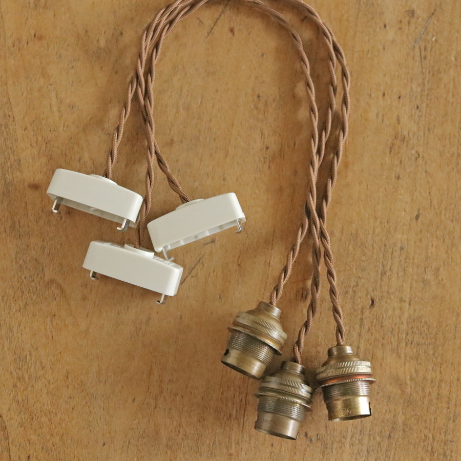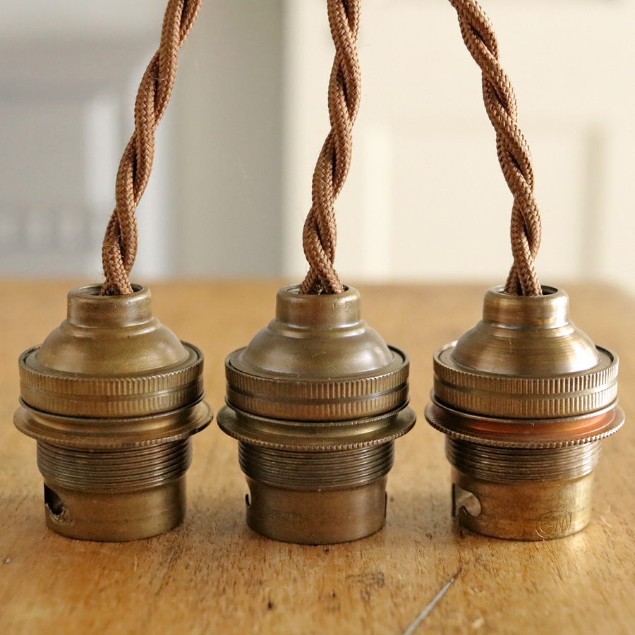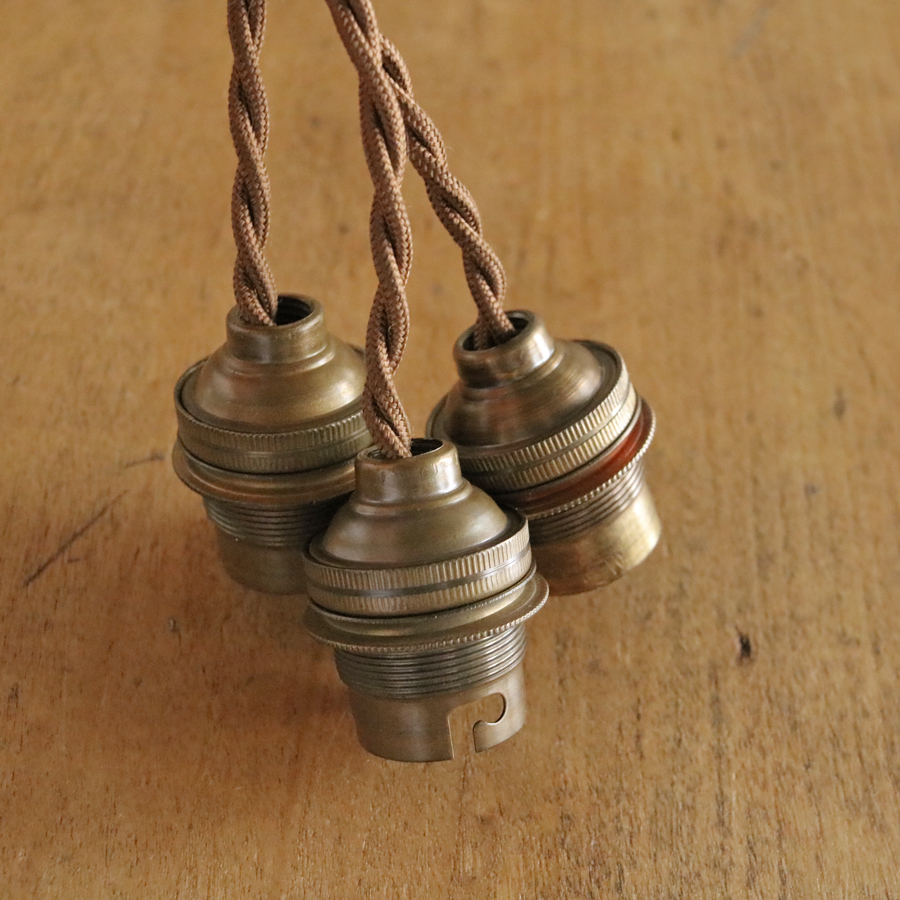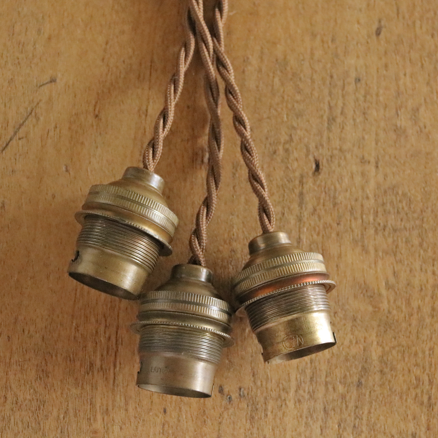 A* 3個セット 飴色 フランス アンティーク 真鍮 ソケット ランプ/ブラス 吊り下げ イギリス 北欧