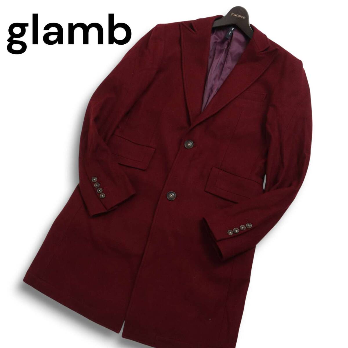 glamb グラム 秋冬 メルトン ウール★ チェスター コート Sz.2 メンズ 日本製 バーガンディー