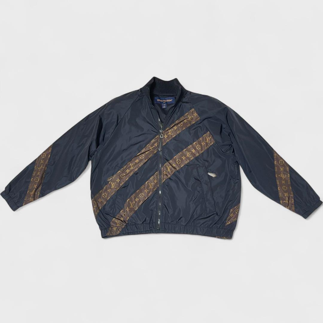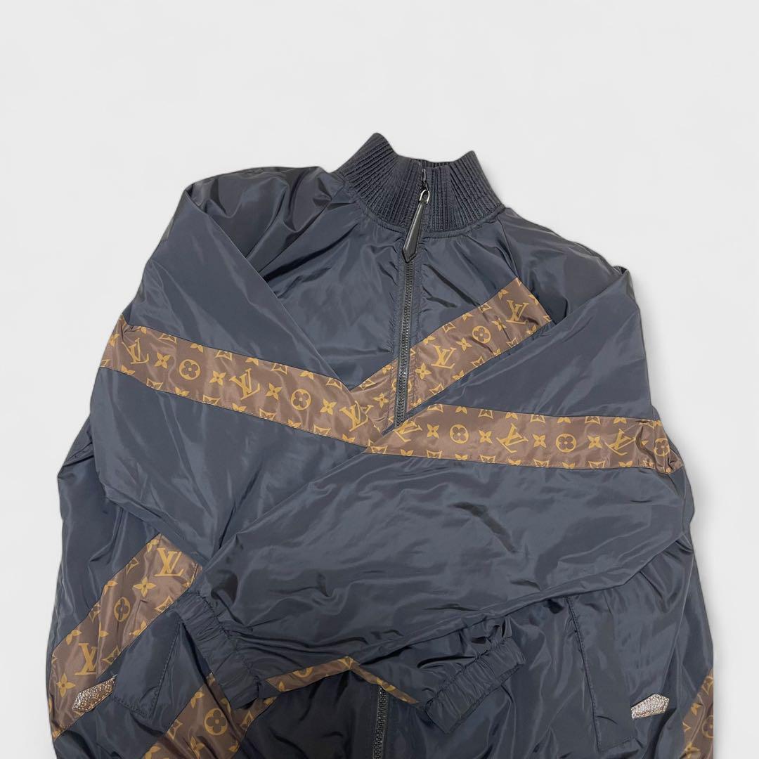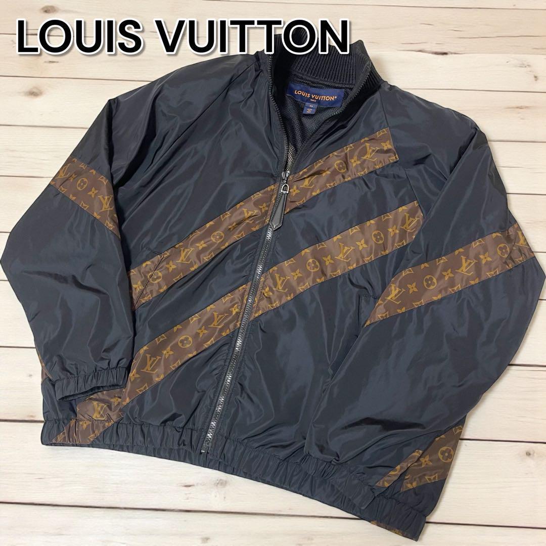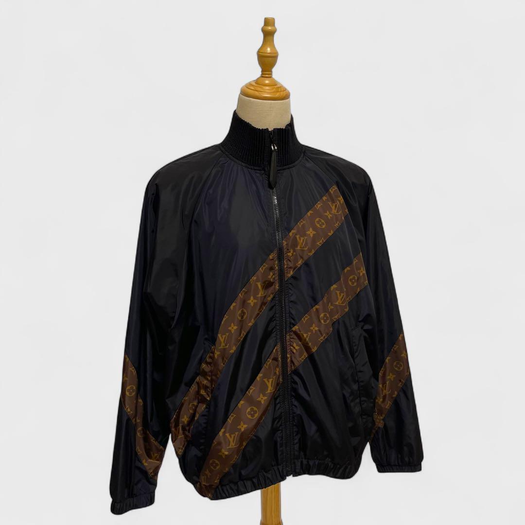 【レア品/極美品】LOUIS VUITTON ルイヴィトン ストライプジップアップ ナイロンジャケット サイズ34 黒 イタリア製 レディース アウター | |||