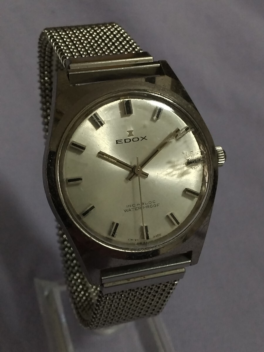 古い腕時計 EDOX 手巻き シルバー/シルバー 稼動品 INCABLOC WATERPROOF  36.8mm
