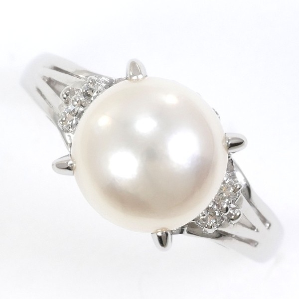 PT900 リング 指輪 10号 パール(真珠) 約8mm ダイヤ 0.06 総重量約5.2g 中古 美品 送料無料 | |