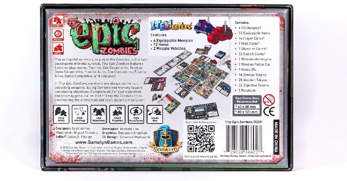 「Tiny Epic Zombies」は、エコーリッジモールで突如発生したゾンビのアウトブレイクを舞台にしたボードゲームです。