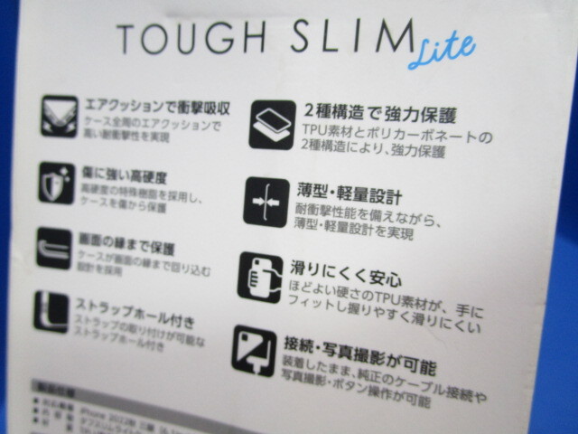 全周に配置した独自設計のエアクッションが衝撃を吸収し、背面には高硬度の特殊樹脂を採用した、iPhone 14 Pro用TOUGH SLIM LITEケースです。