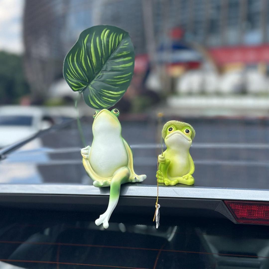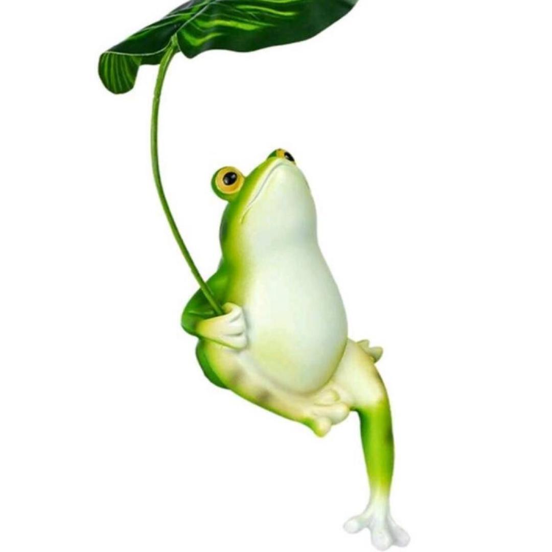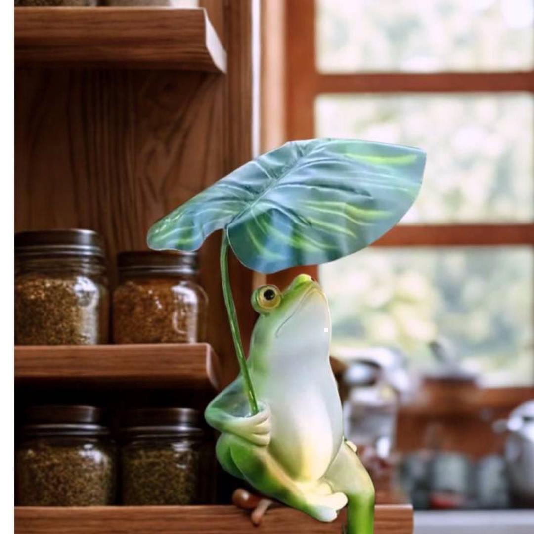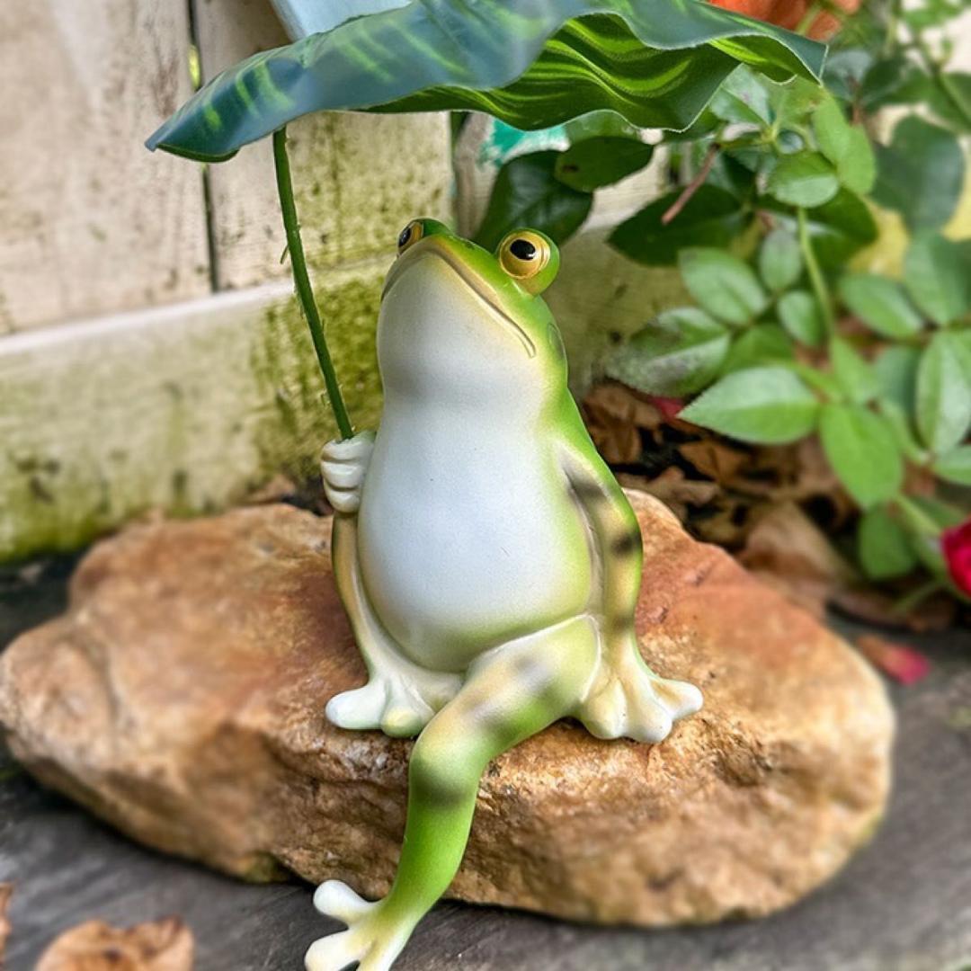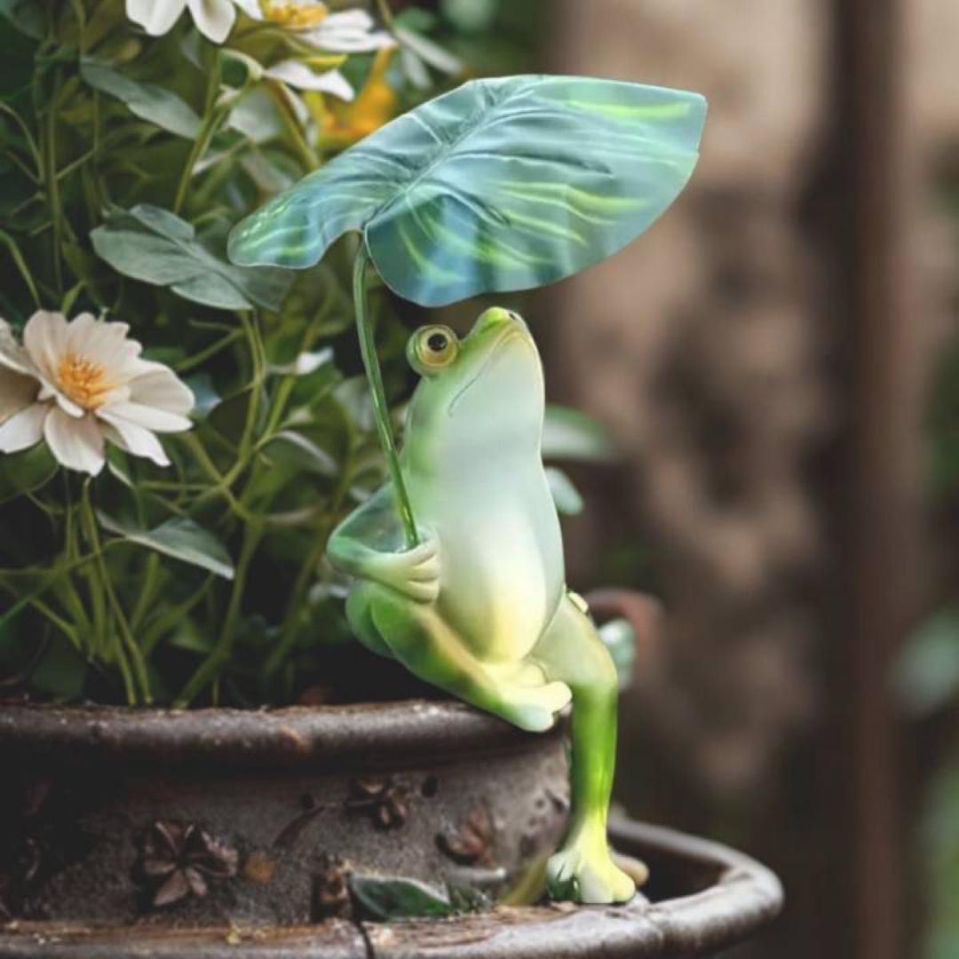 葉っぱの傘を片手に、のんびり座るカエルがとっても癒される!