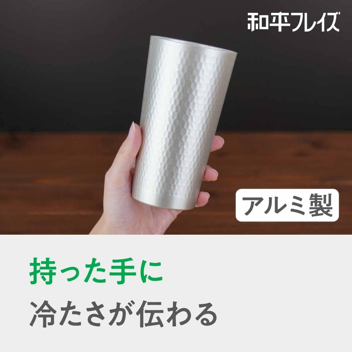 商品紹介 軽くて割れない! アルミ製タンブラー。熱伝導が良いので、飲み物の冷たさが直に味わえます。(※熱い飲み物には使用しないでください)キズがつきにくく、耐食性を高める内外面アルマイト加工。 ●記載されている注意事項をお守りください。