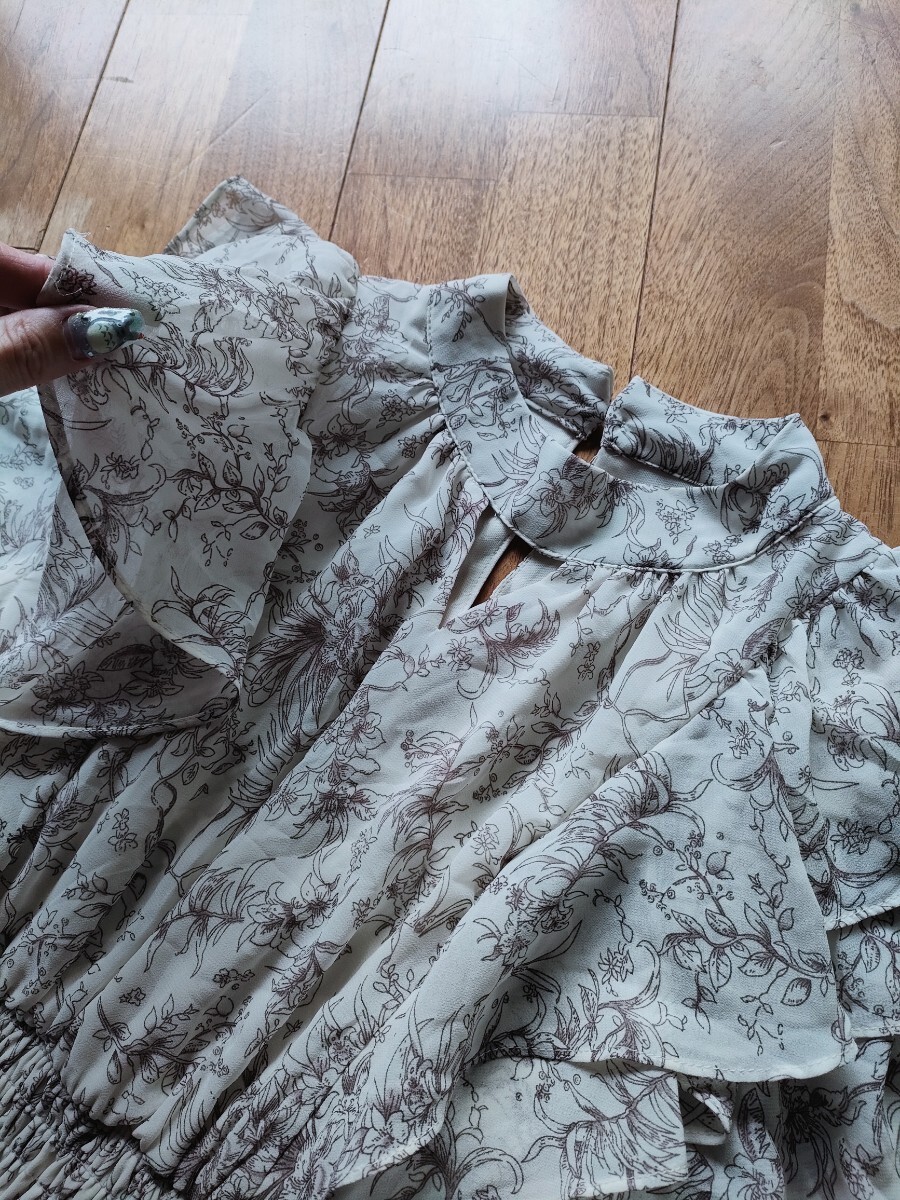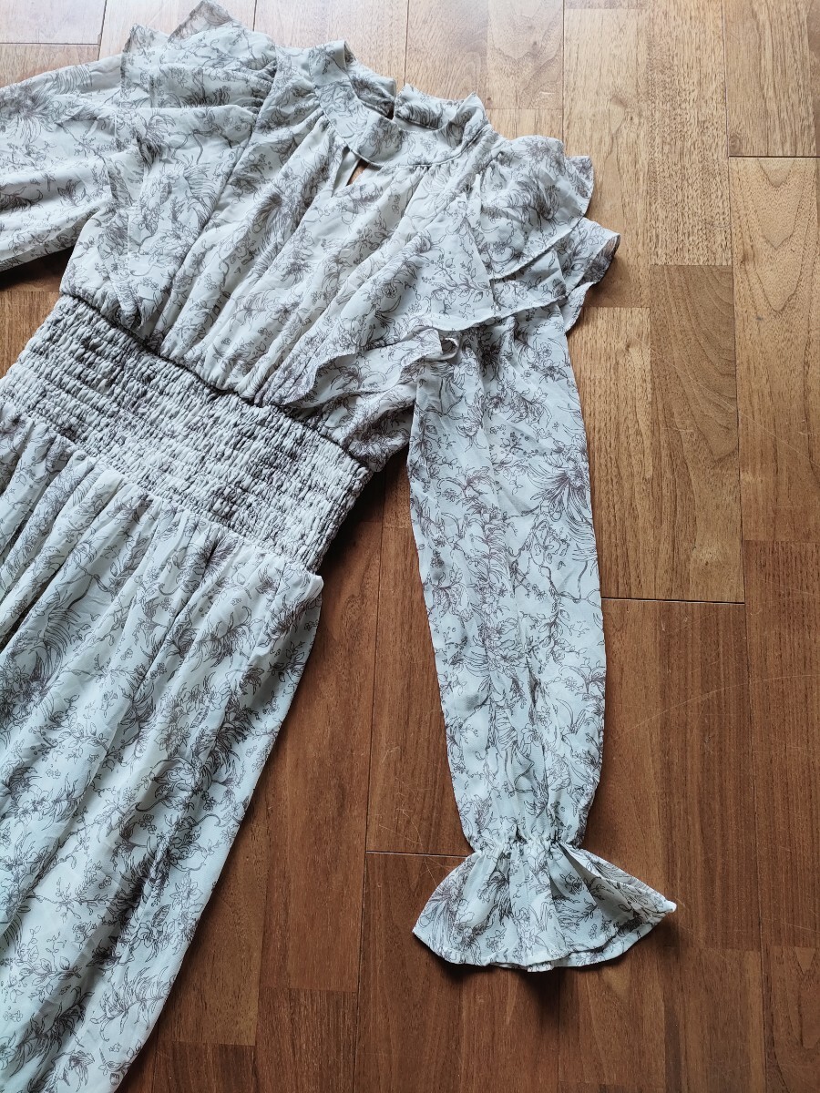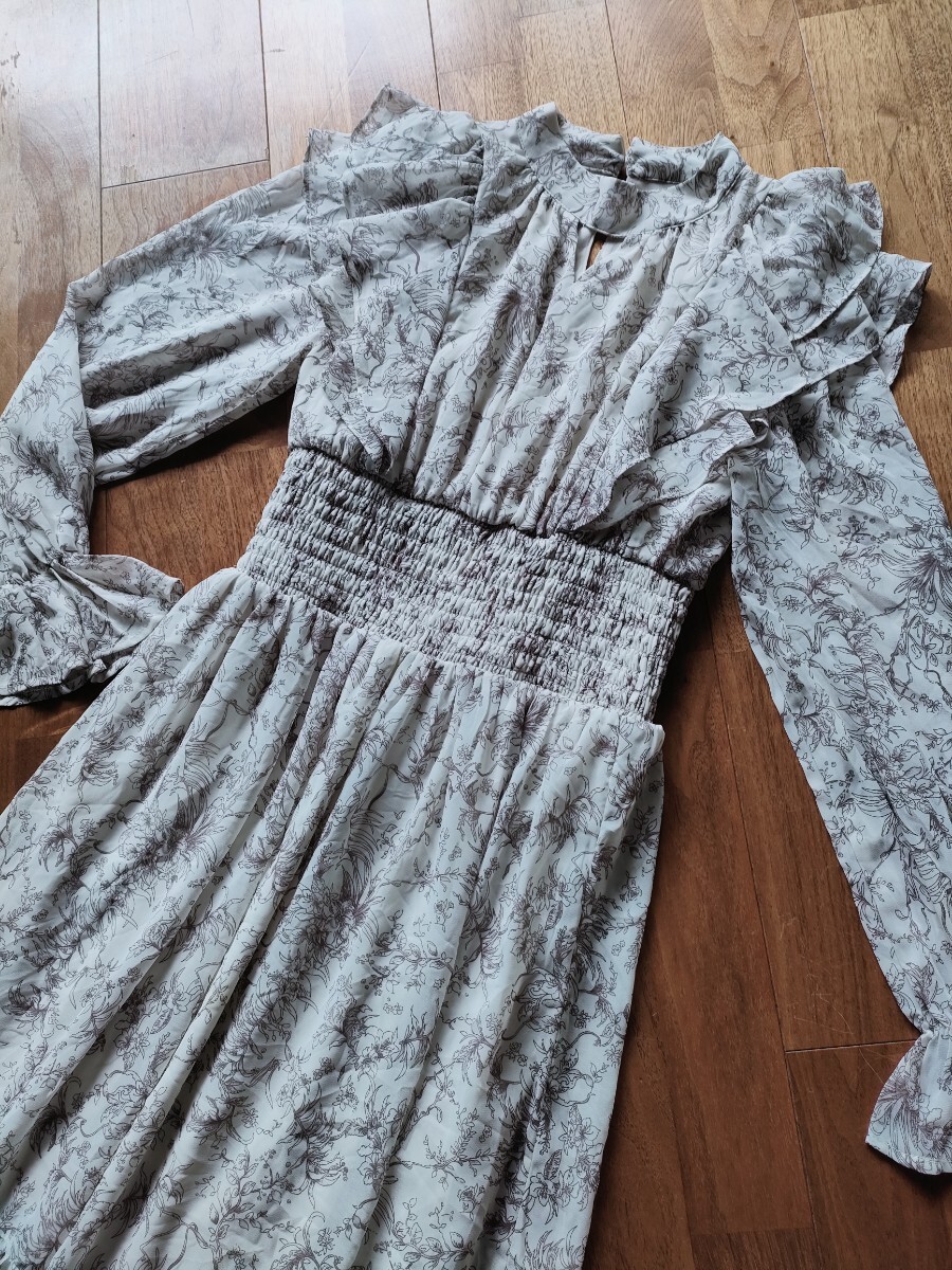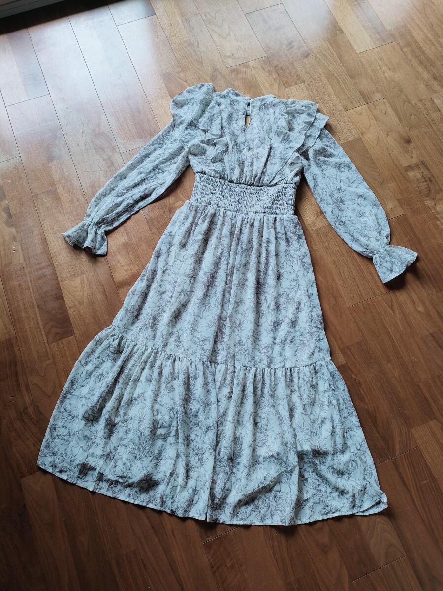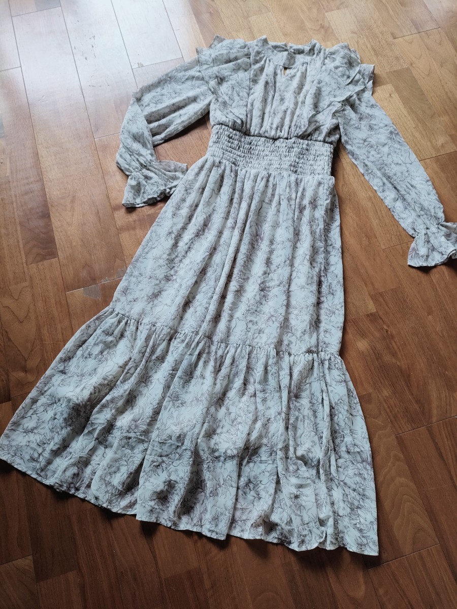 【デザイン】女性用 袖以外裏地付き マキシ丈 長袖 スタンドカラー シフォン素材